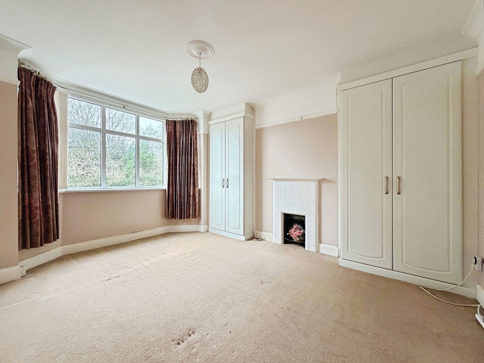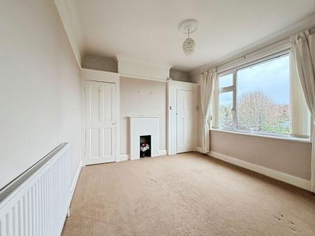 Skimmed coved ceiling. Double glazed window to rear aspect. Feature fireplace. Built in wardrobe. Airing cupboard. Wall mounted radiator.
