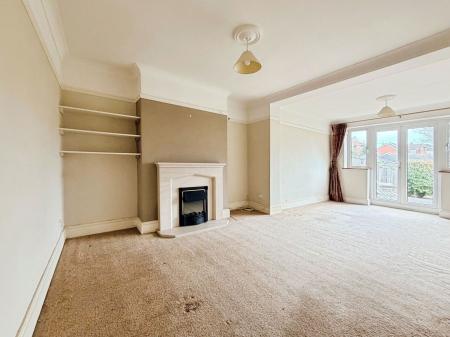Skimmed coved ceiling. Two double glazed windows to rear aspect. Double glazed french doors to rear garden. A feature limestone fireplace with real flame gas fire. Wall mounted radiator. T.V point.