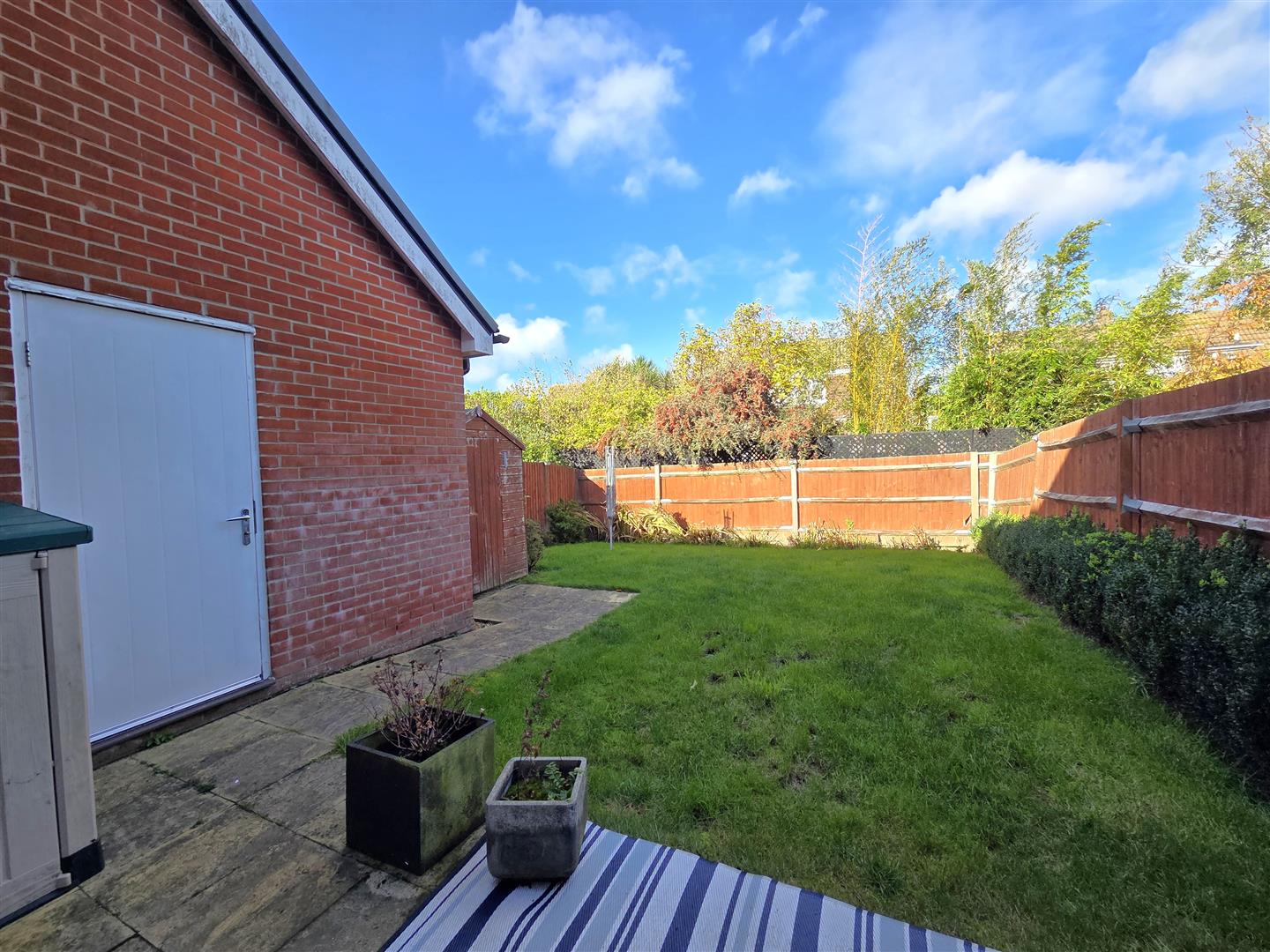 Landscaped rear garden majority laid to lawn with paved patio area & shed to remain