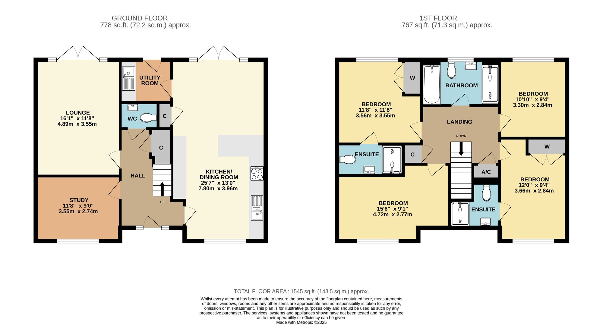 Built by Elivia Homes and finished to a high standard, the accommodation on the ground floor comprises a spacious, 25ft kitchen/diner with integrated appliances and French doors to the rear garden, utility room, study, generous lounge with French doors leading out to the garden, and a WC.