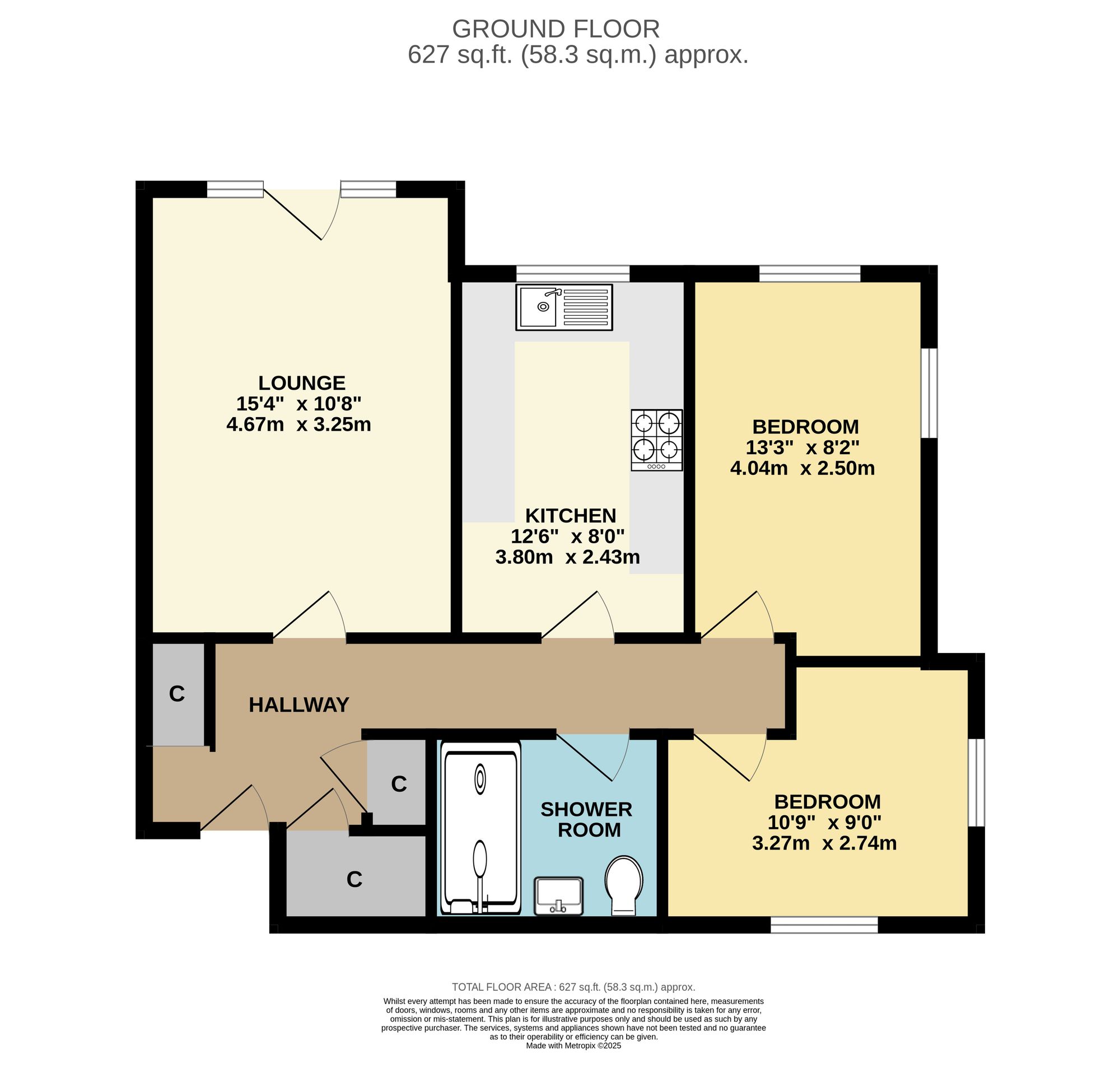 Service charge includes: Water rates, ground rent, buildings insurance, monthly window cleaning and grounds keeping.