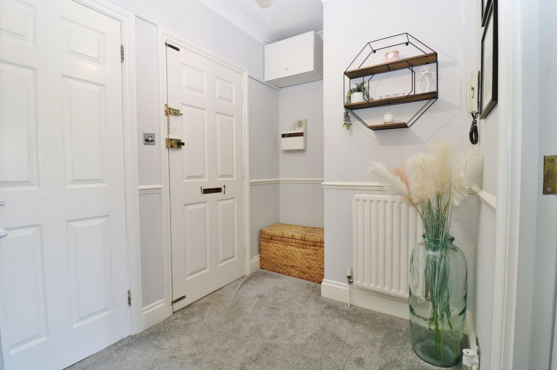 The property is approached via a communal hallway which leads directly through to the entrance hall. In the hallway there are two large cupboards providing useful storage space, a cupboard housing the electric meter and spotlights.