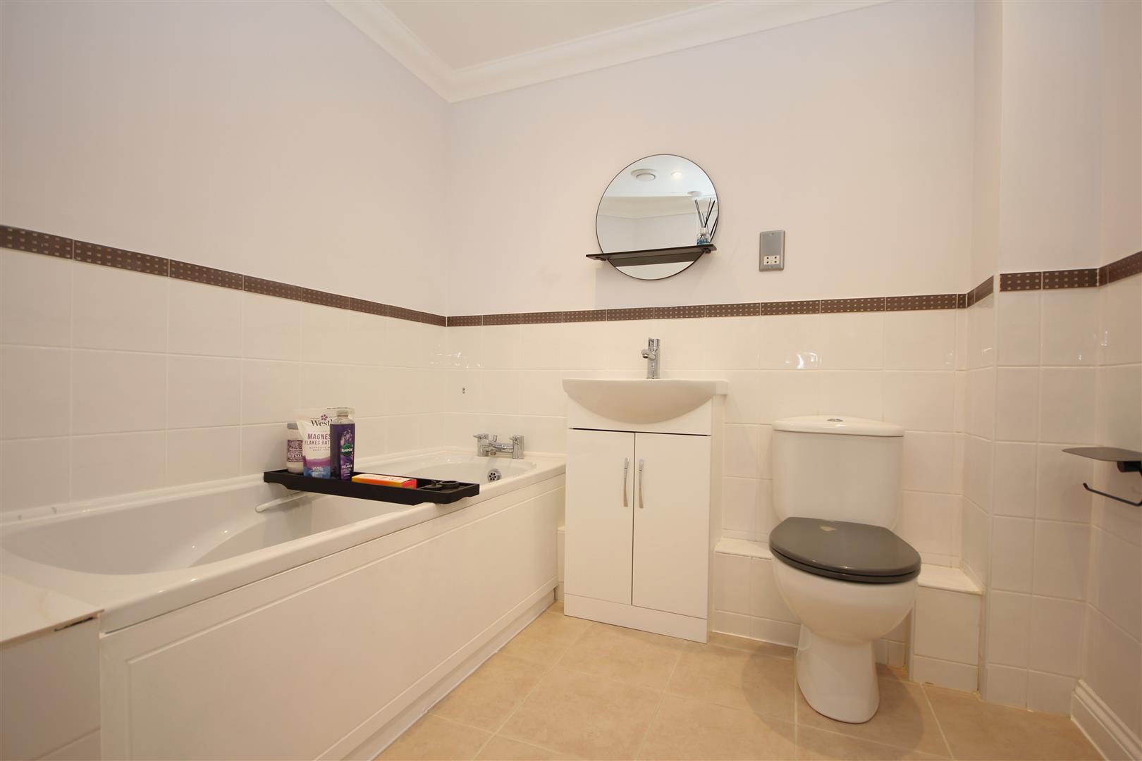 Modern main bathroom comprising three piece white suite