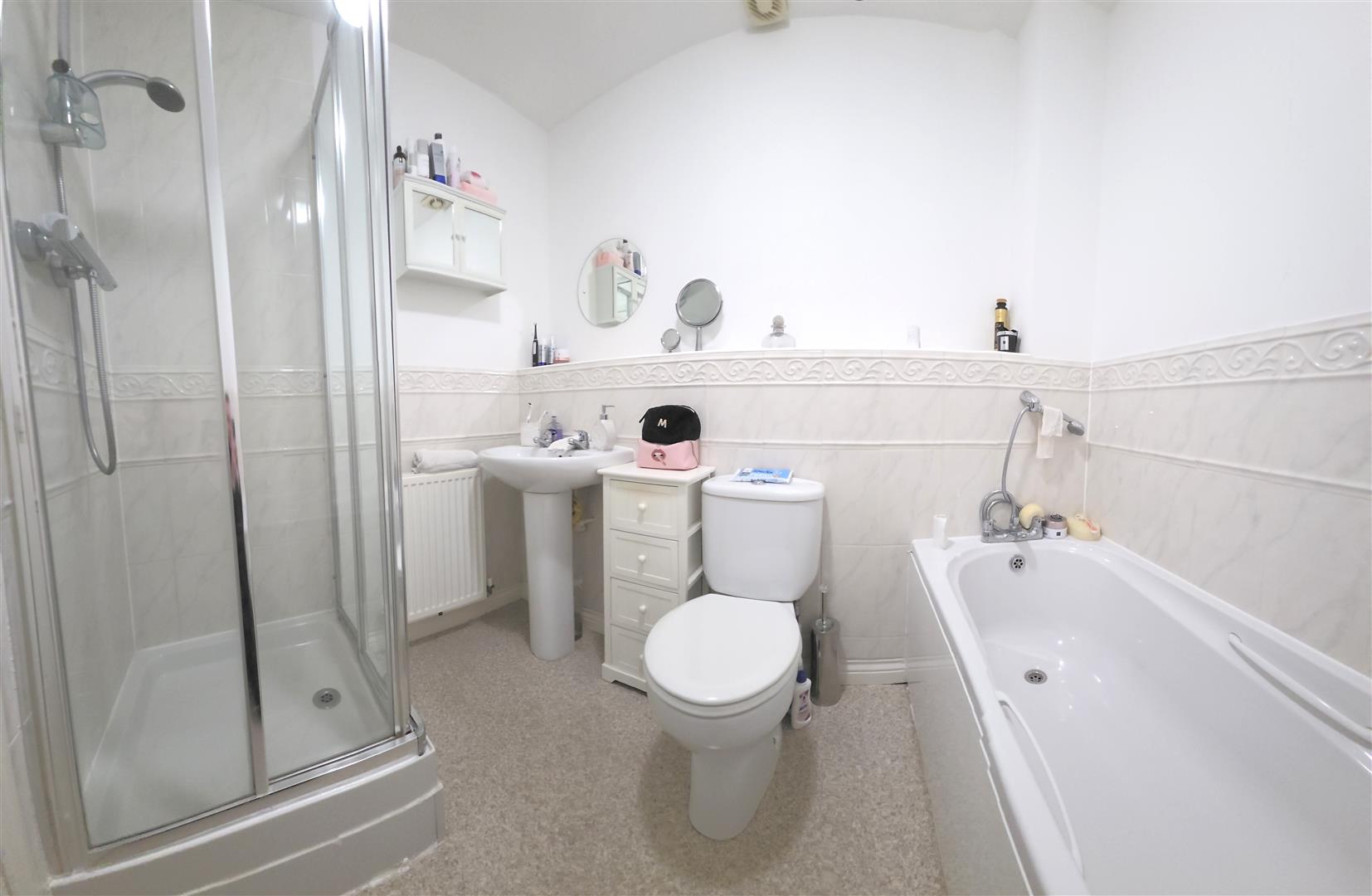Main bathroom comprising four piece suite, with a bath and seperate shower cubicle