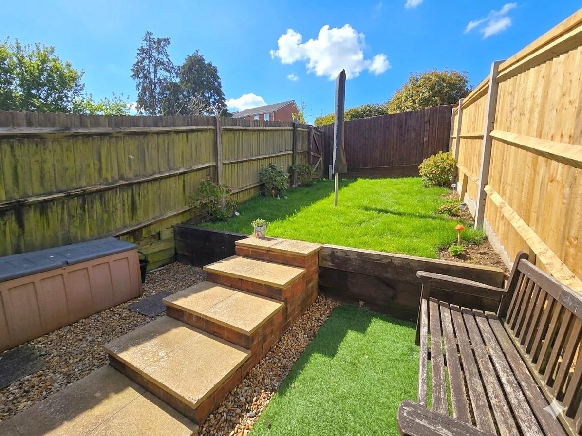 Rear tiered garden laid to lawn with shingled area, display flower/shrubbery & rear access