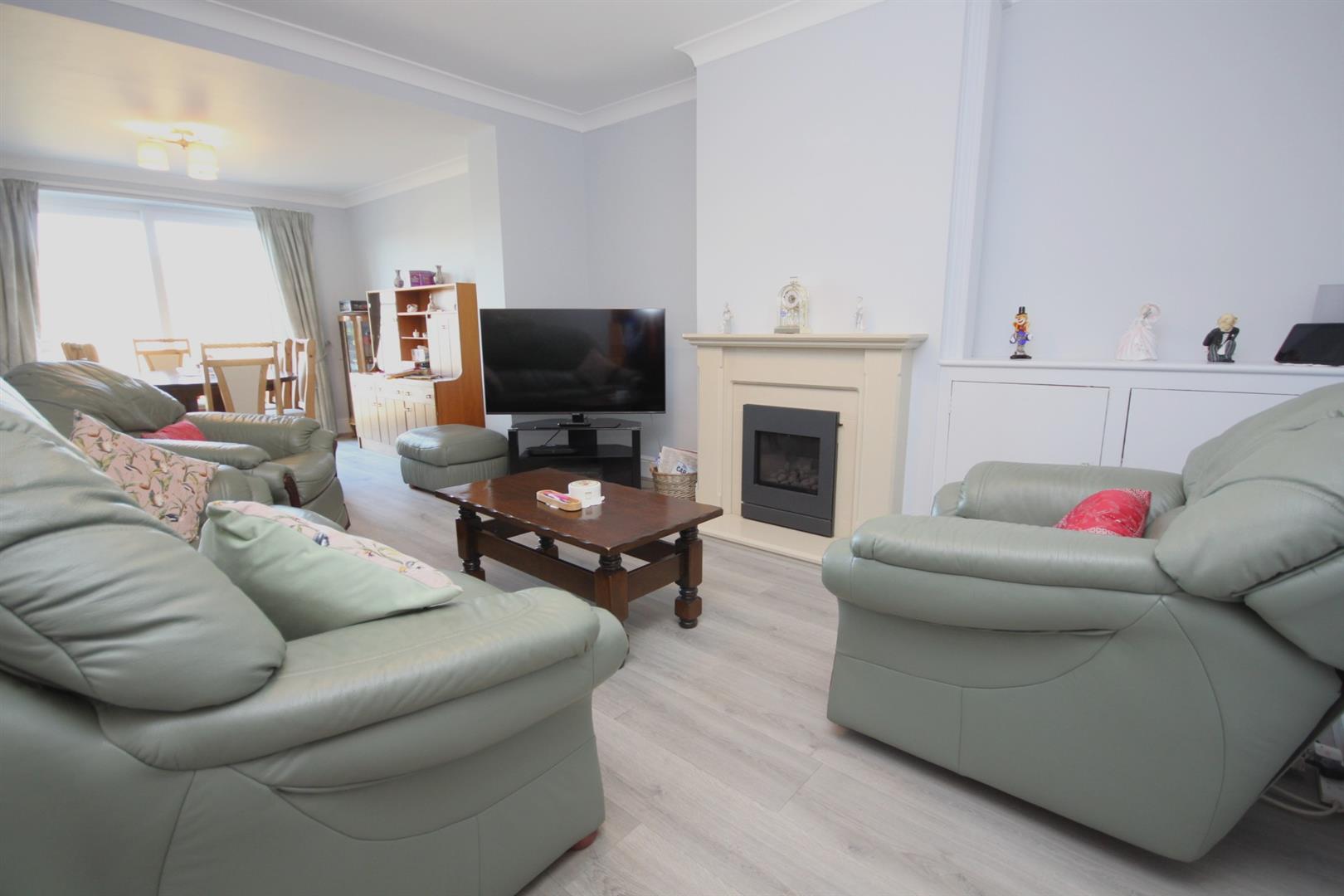 Lounge with centrepiece stone surround fireplace with inset gas fire & open access into the dining room