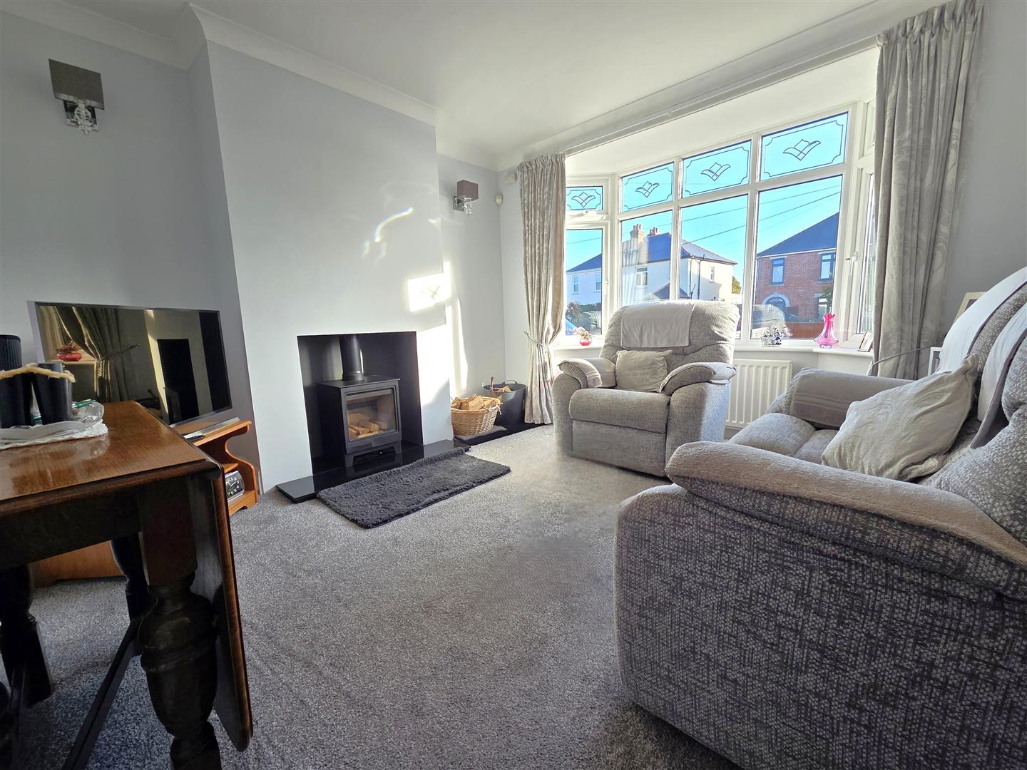 Snug with walk in bay window to the front & feature centrepiece log burner