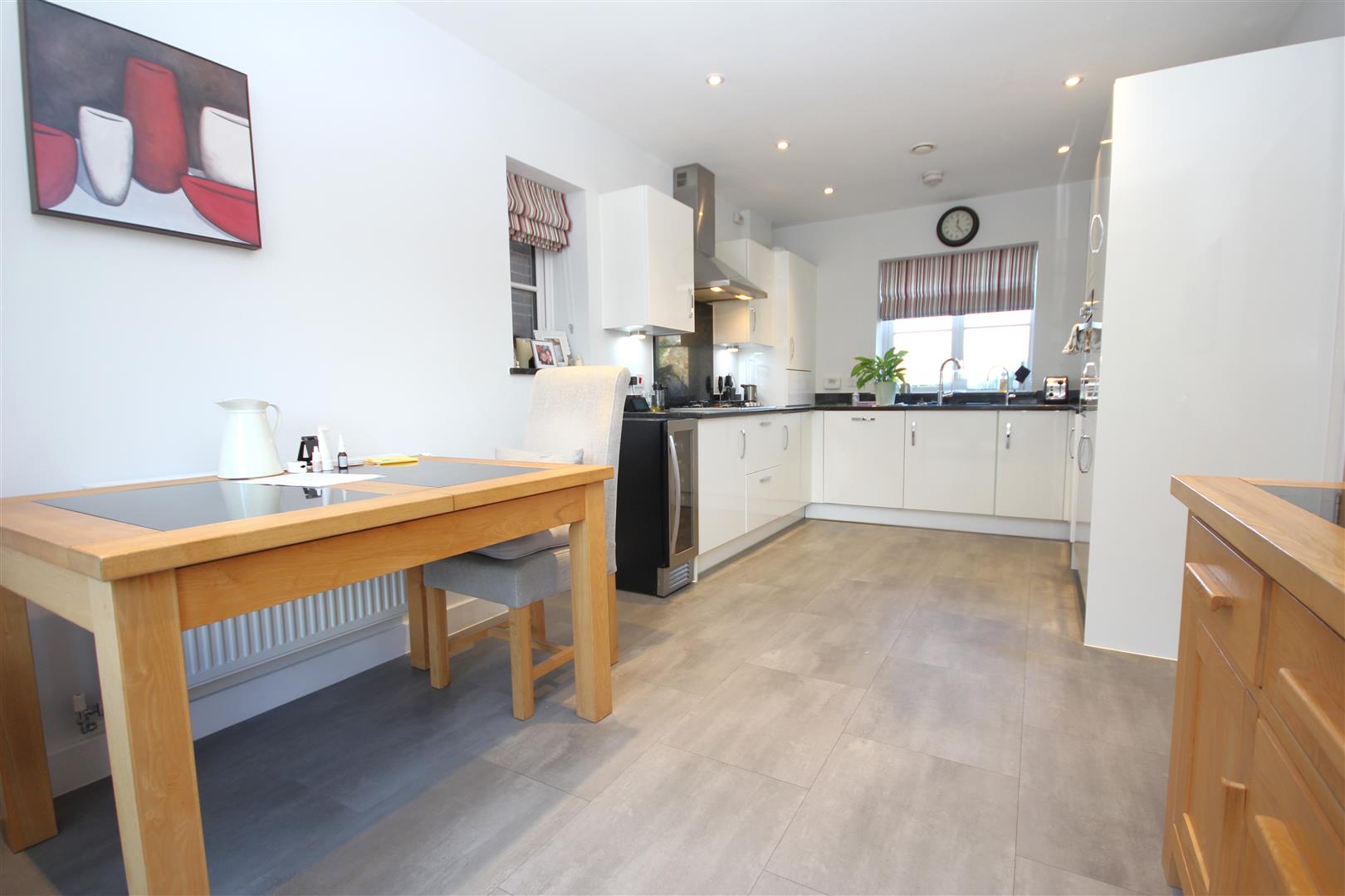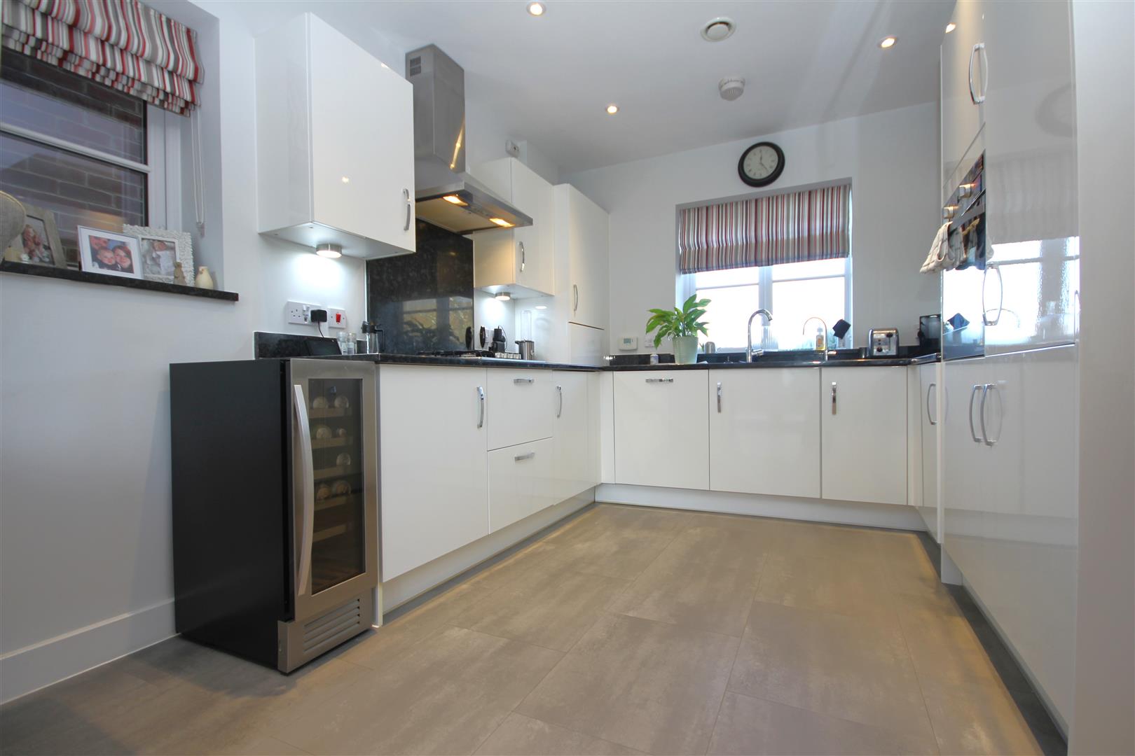 Integrated appliances include oven, four ring gas hob, fridge/freezer, dishwasher & washing machine