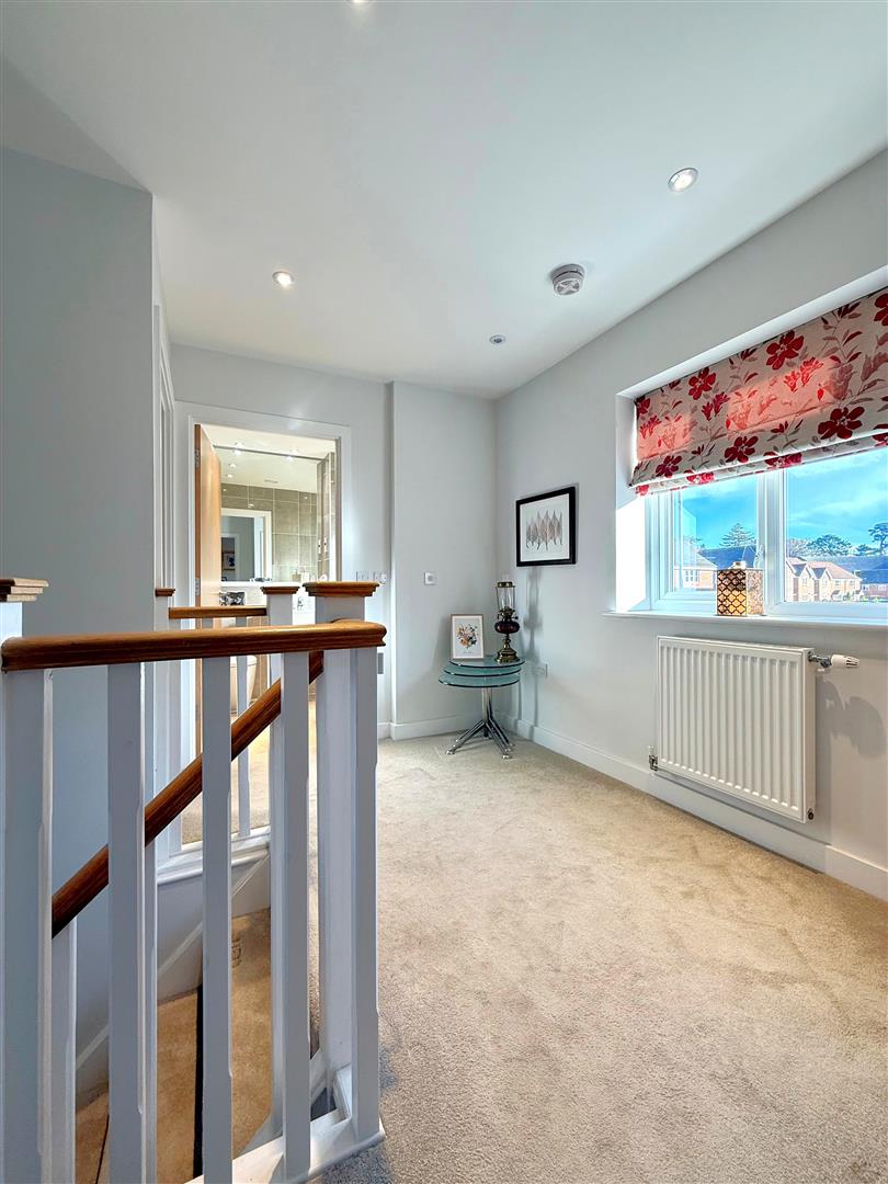 Galleried landing with built in airing cupboard & window overlooking the garden