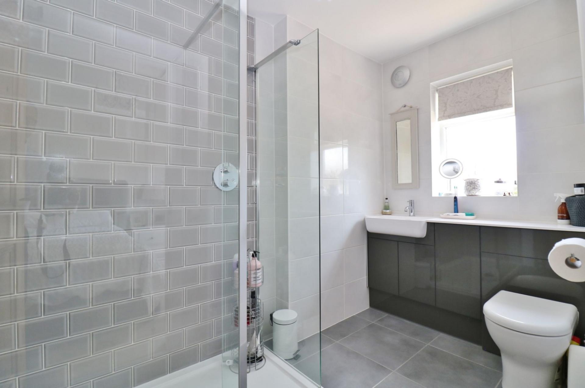 On the first floor, the master bedroom overlooks the rear garden and has a modern en-suite comprising a walk-in shower cubicle, vanity wash hand basin, WC and a window to the rear.