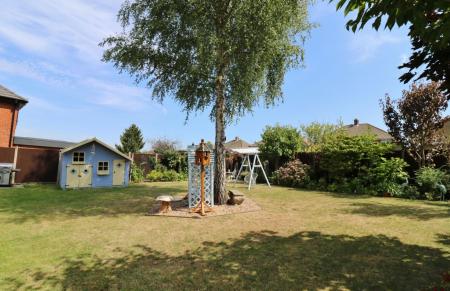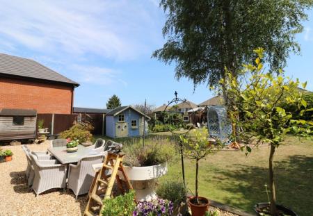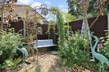 Gated side access leads round to the good size rear garden which enjoys a south easterly aspect and has a shingled seating area, leaving the rest of the garden mainly laid to lawn with attractive, planted borders.