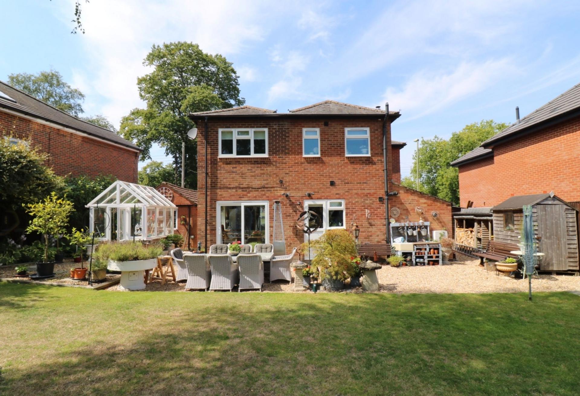 To the front there is a shingled driveway providing off road parking for several cars and a detached garage, whilst to the rear the good size garden enjoys a south easterly aspect.