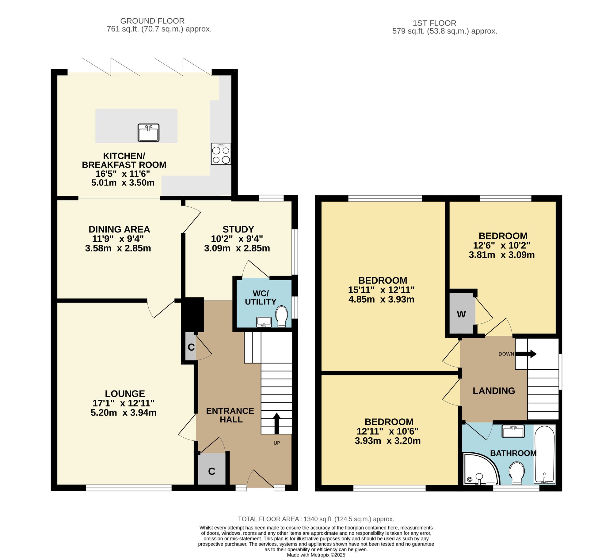The study features a full-length window to the rear, a window to the side and has a door through to the utility/WC, which has a wash hand basin, WC, plumbing for a washing machine and a window to the side.