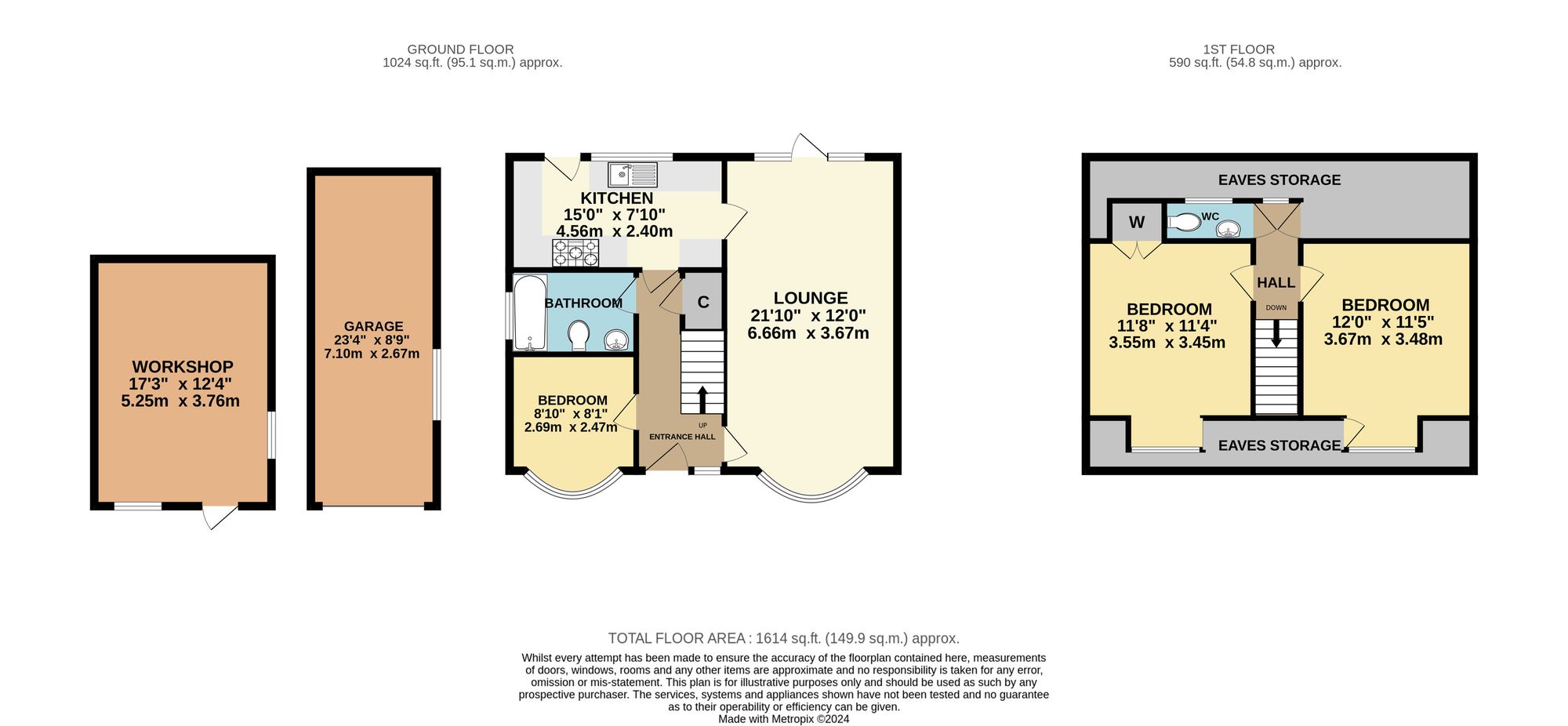 On the first floor, there are two, well-proportioned double bedrooms both with windows to the front. One benefits from a fitted wardrobe, whilst the other has access to eaves storage space. There is also a cloakroom with a WC, wash hand basin and a window to the rear.