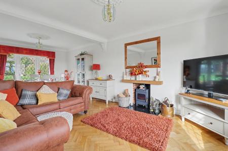 To the front of the property there is a large driveway providing ample off road parking for multiple cars. A set of wooden double gates to the side provides access to the good size rear garden and the detached, tandem length garage. There is a paved patio area, with the rest of the garden being mainly laid to lawn with hedgerow borders. Towards the end there is a useful workshop and a further section of lawn.