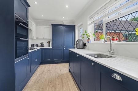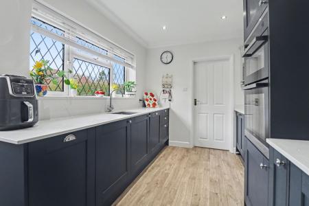 The entrance hall has stairs leading to the first floor, an understairs storage cupboard and doors through to all ground floor rooms. The generous lounge/diner is a dual aspect room with a bay window to the front and a door to the rear, with windows either side, opening out to the garden. The modern kitchen has been fitted with a range of shaker style wall and base units with a built-in double oven, five ring gas hob with extractor over, as well as an integrated fridge/freezer, dishwasher and washing machine.