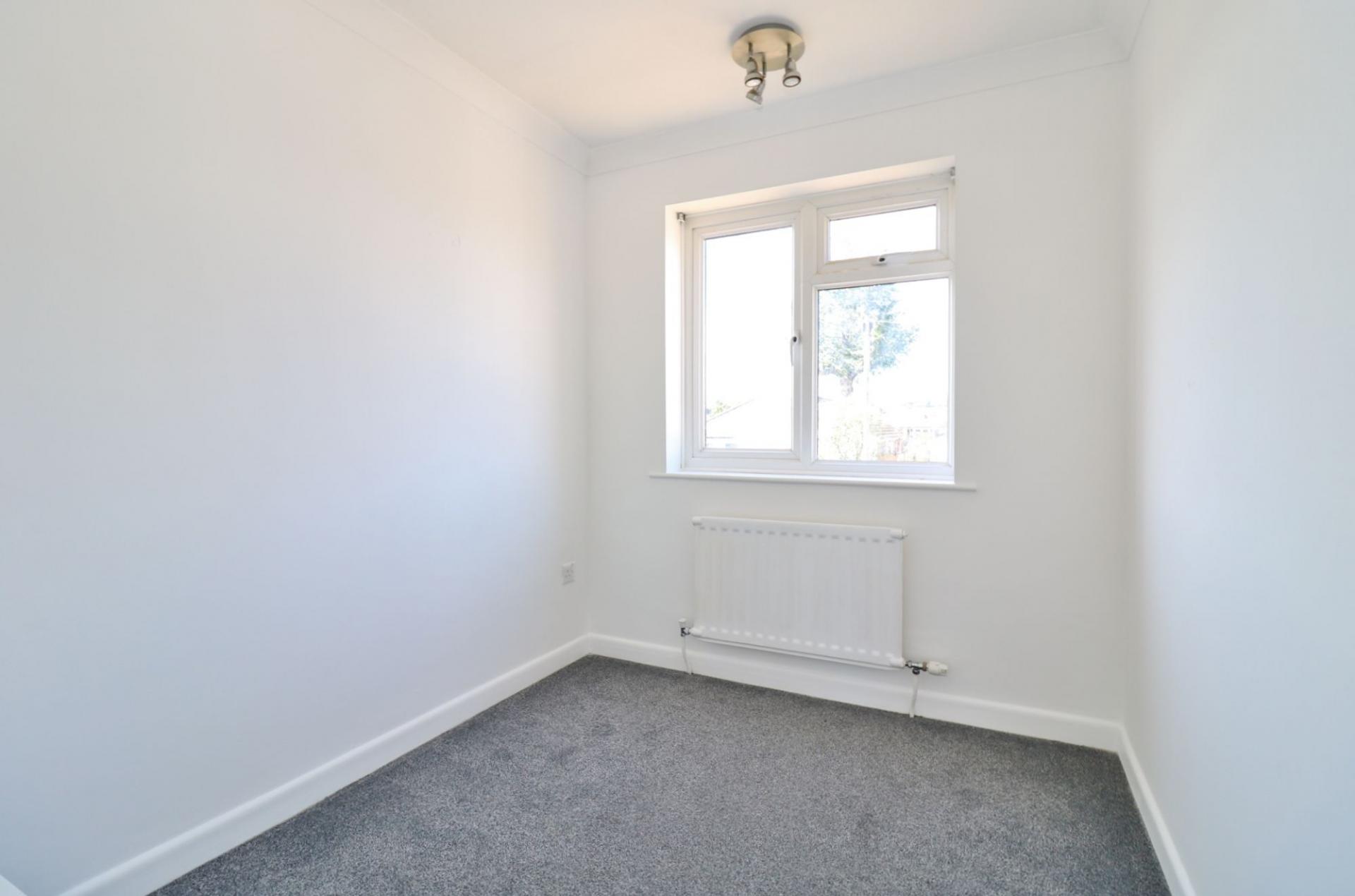 The spacious master bedroom faces the front of the property, whilst the second bedroom overlooks the rear garden and has a built-in airing cupboard and bedroom three has a window to the front.
