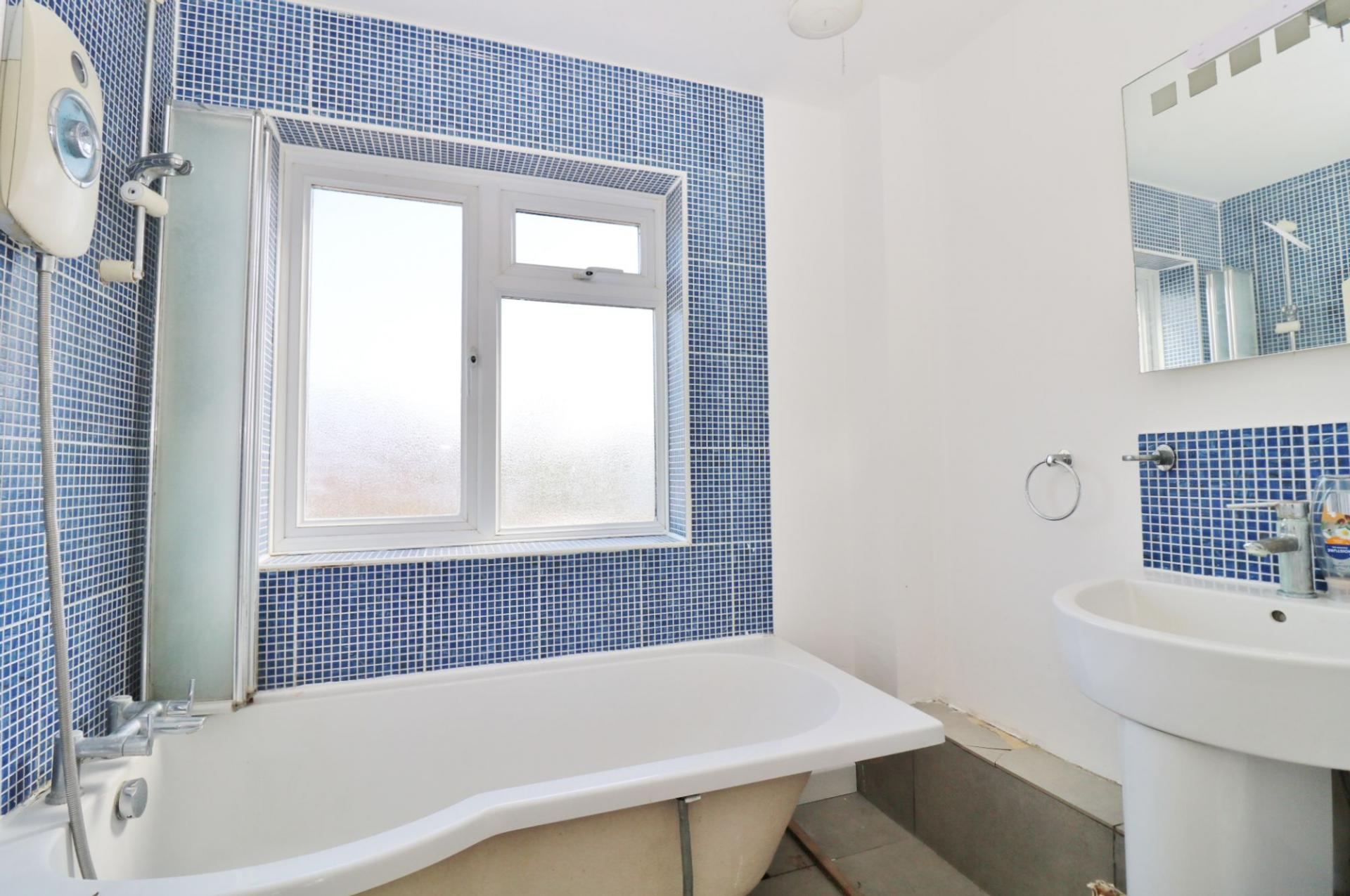 The family bathroom has a P-shaped bath with shower over, wash hand basin, WC and a window to the rear.