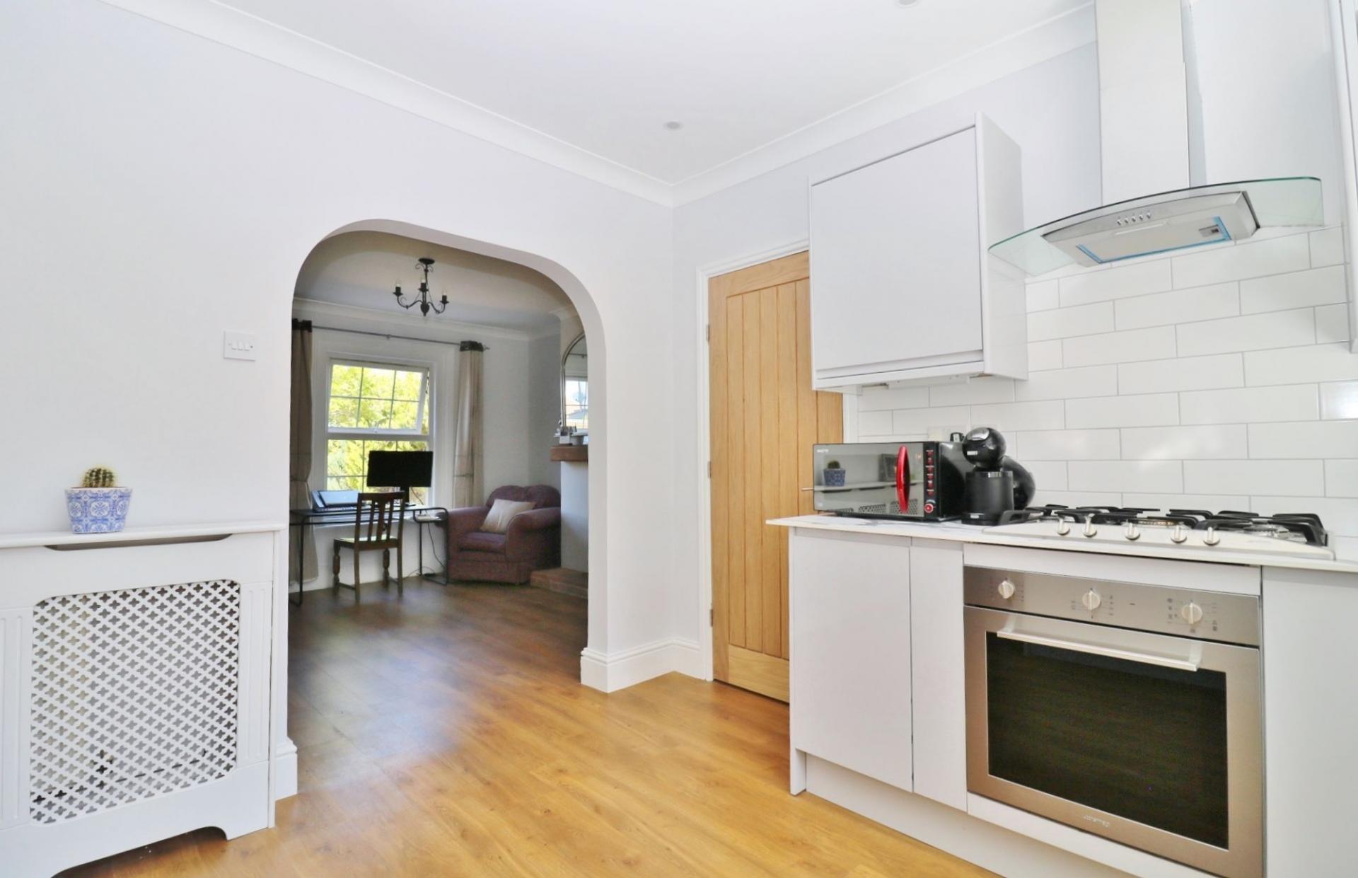 The entrance porch leads through to the family room, which has a window to the front, a wood burning stove and stairs to the first floor. An opening leads through to the beautiful kitchen which has a window to the rear and has been fitted with a range of modern wall and base units with a built-in oven and five ring gas hob with extractor over as well as integrated appliances.