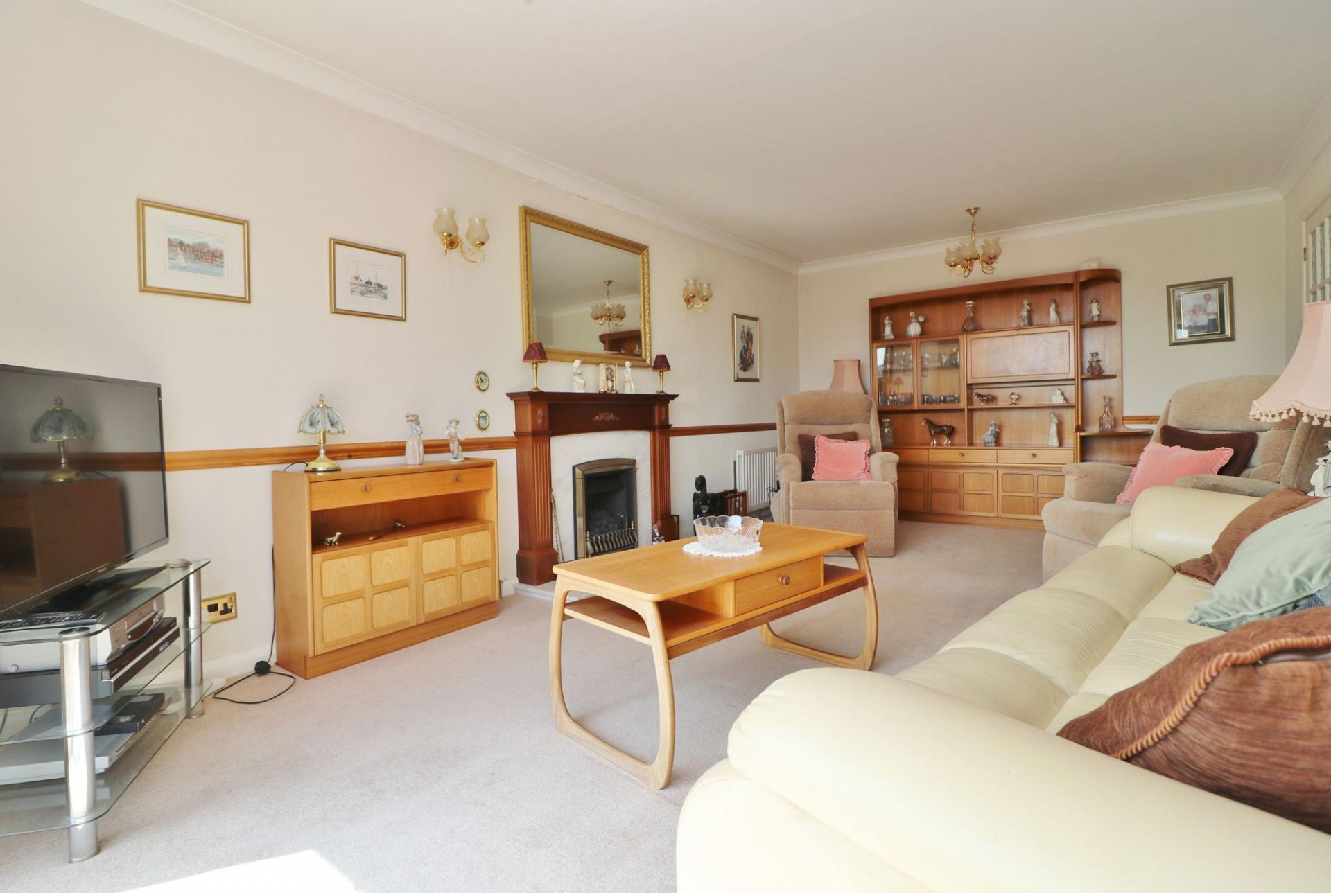 The generous, 20ft lounge/diner has a feature fireplace to one wall and a window and door to the rear leading out to the garden.
