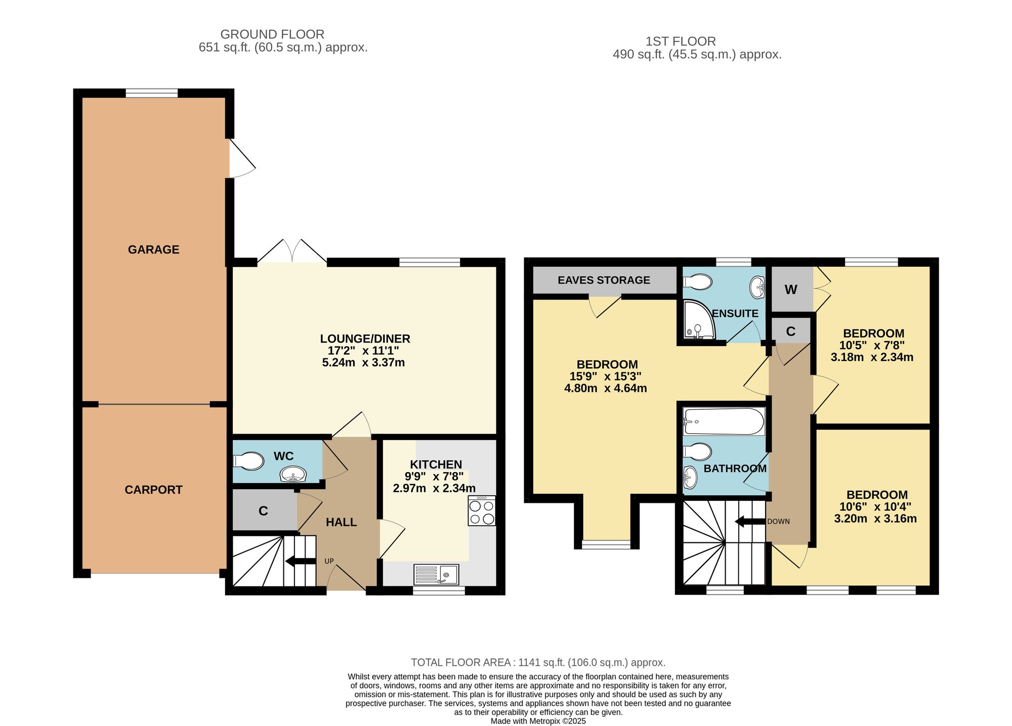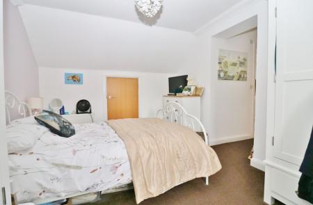 The spacious master bedroom has a window to the front, access to eaves storage space and a modern en-suite with a corner shower cubicle, wash hand basin, WC, heated towel rail and a window to the rear.