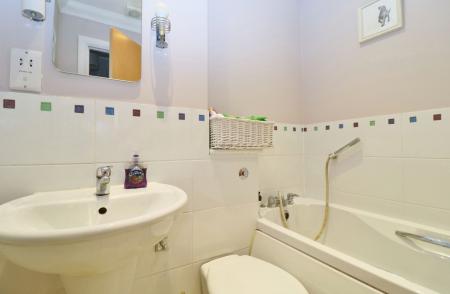 The family bathroom comprises a panel enclosed bath, wash hand basin and a WC.