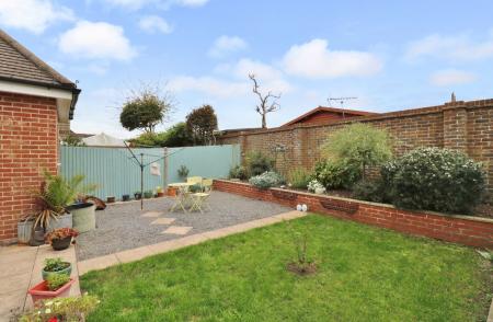 The attractive, landscaped rear garden enjoys a south easterly aspect and has a paved seating area, a section of lawn and a shingled area extending behind the garage.