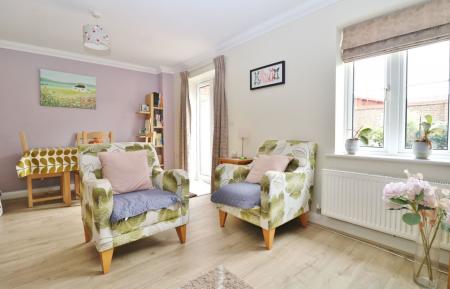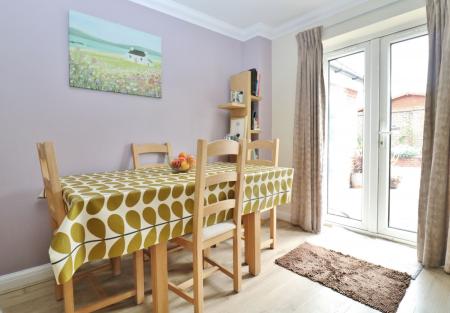 The generous lounge/diner is a good-sized room with a window to the rear and French doors from the dining area leading out to the garden.