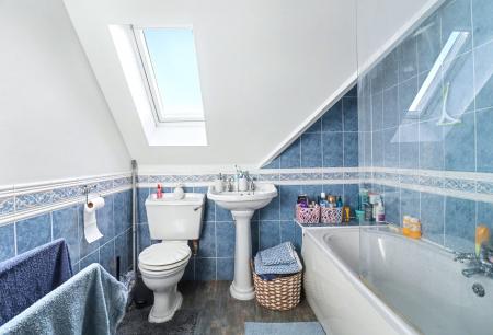 The bathroom comprises a panel enclosed bath with shower and screen over, wash hand basin, WC and a window to the front.
