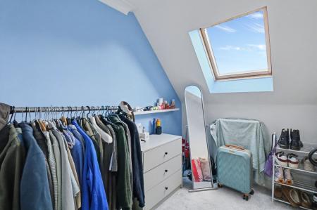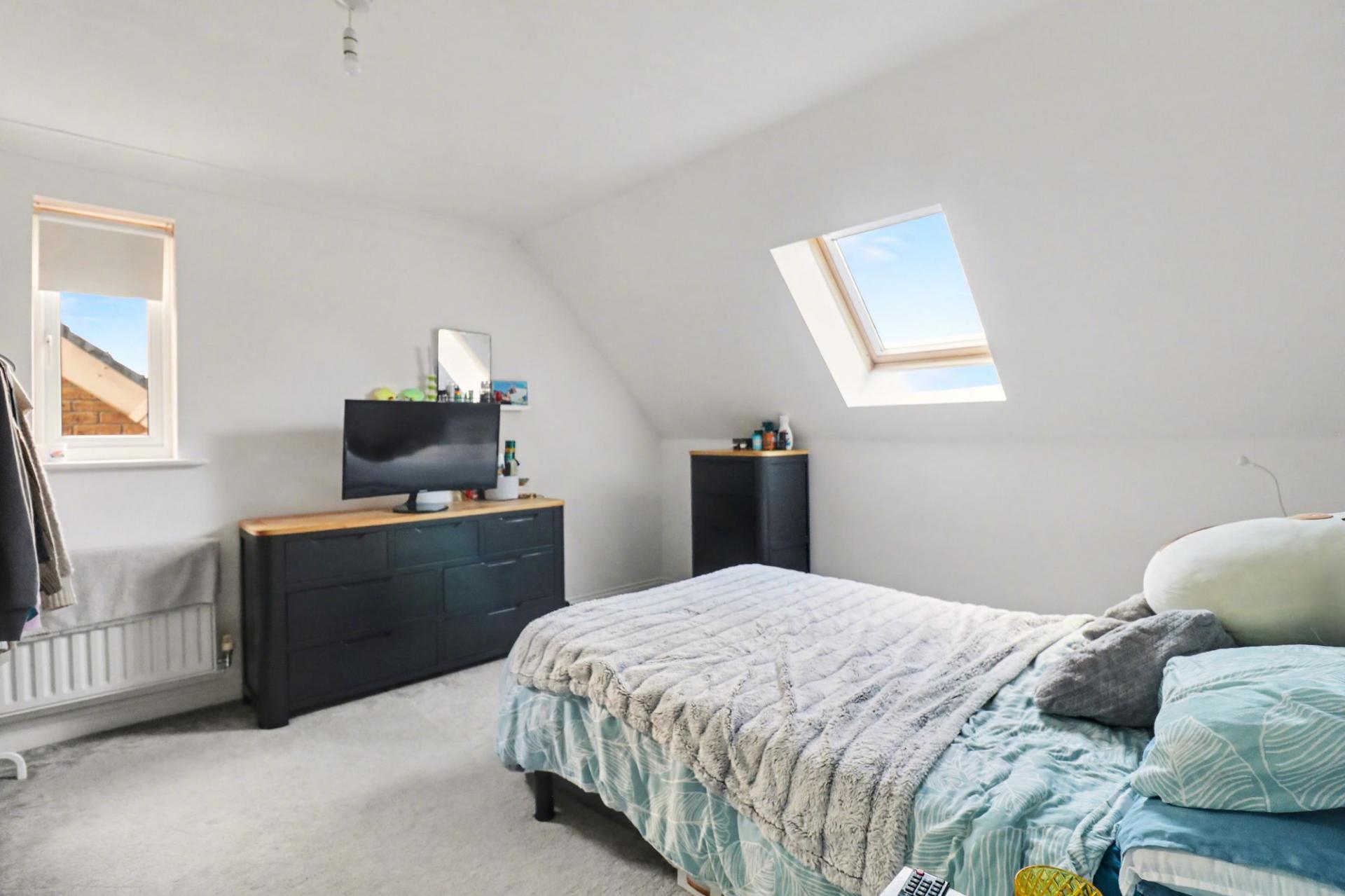 The good-sized master bedroom has a skylight window and a window to the side, whilst the second bedroom is currently being used as a dressing room and has a skylight window to the rear.