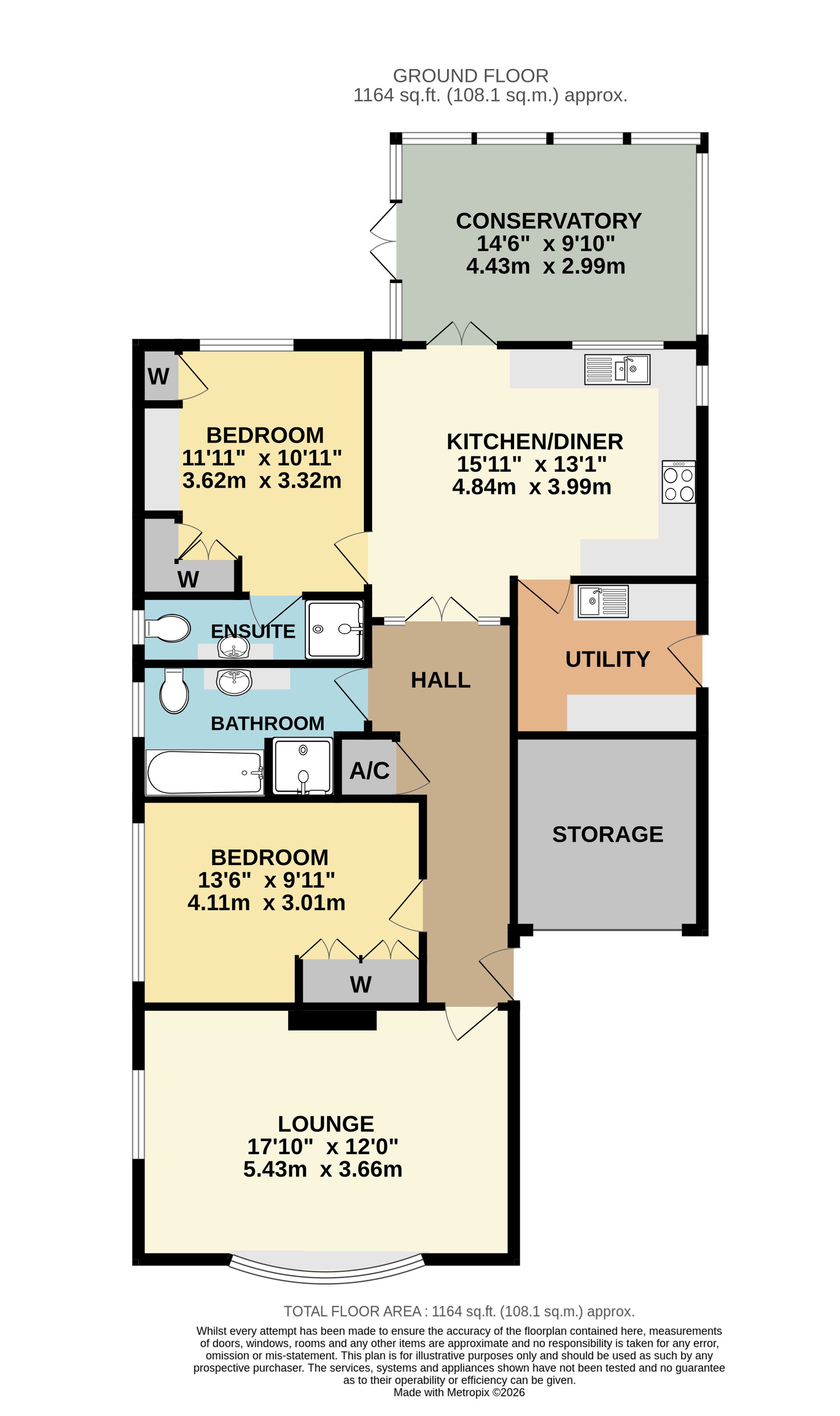 The property comprises a generous sized lounge, spacious kitchen/diner, utility room, conservatory, two double bedrooms, with an en-suite shower room to the master, and a modern, four-piece bathroom.