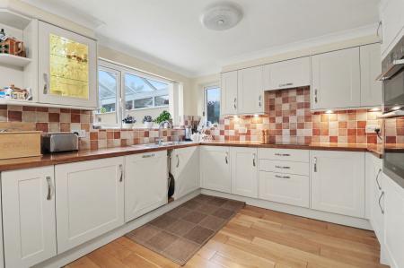 The entrance hall has an airing cupboard and doors through to all principal rooms, including the light and spacious lounge which has windows to the front and side.