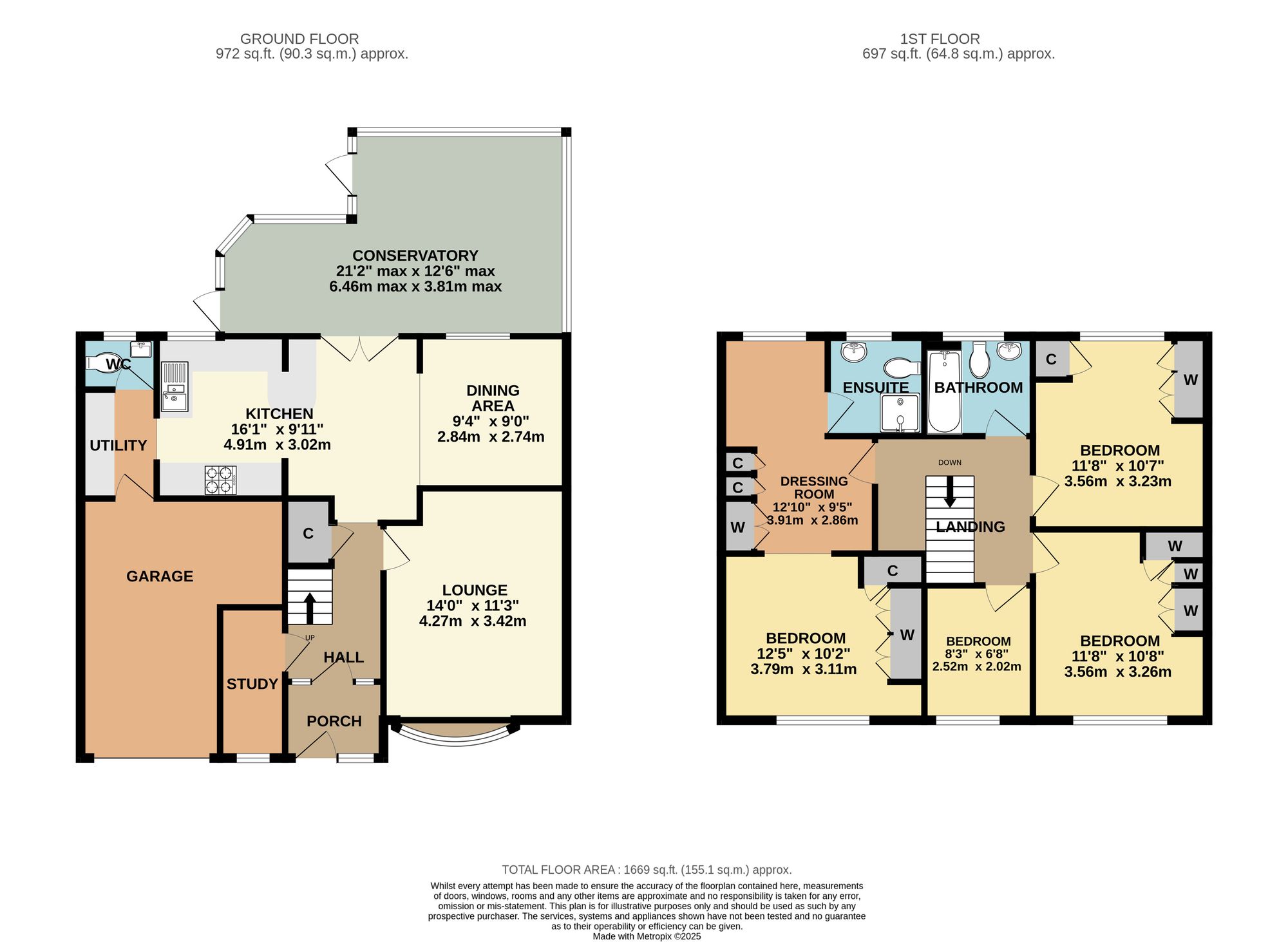 The ground floor comprises a well-proportioned lounge, study, generous kitchen/diner, good size conservatory, utility and a WC.