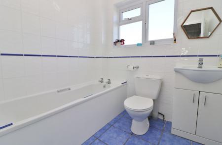 The family bathroom has a window to the rear and comprises a panel enclosed bath, vanity wash hand basin and WC.