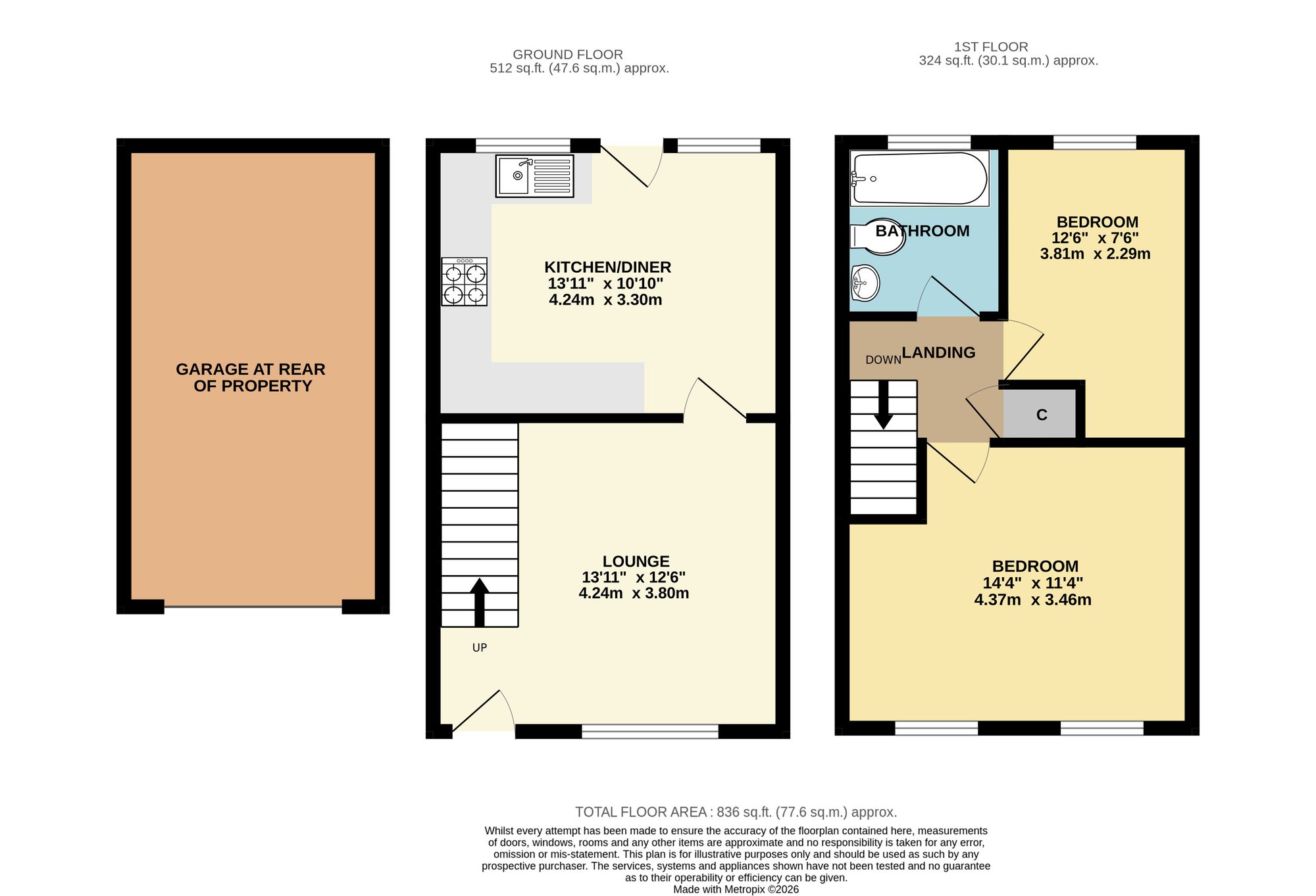 The ground floor comprises a bright and spacious lounge and a modern kitchen/diner with access to the rear garden. On the first floor there are two bedrooms and a contemporary bathroom.