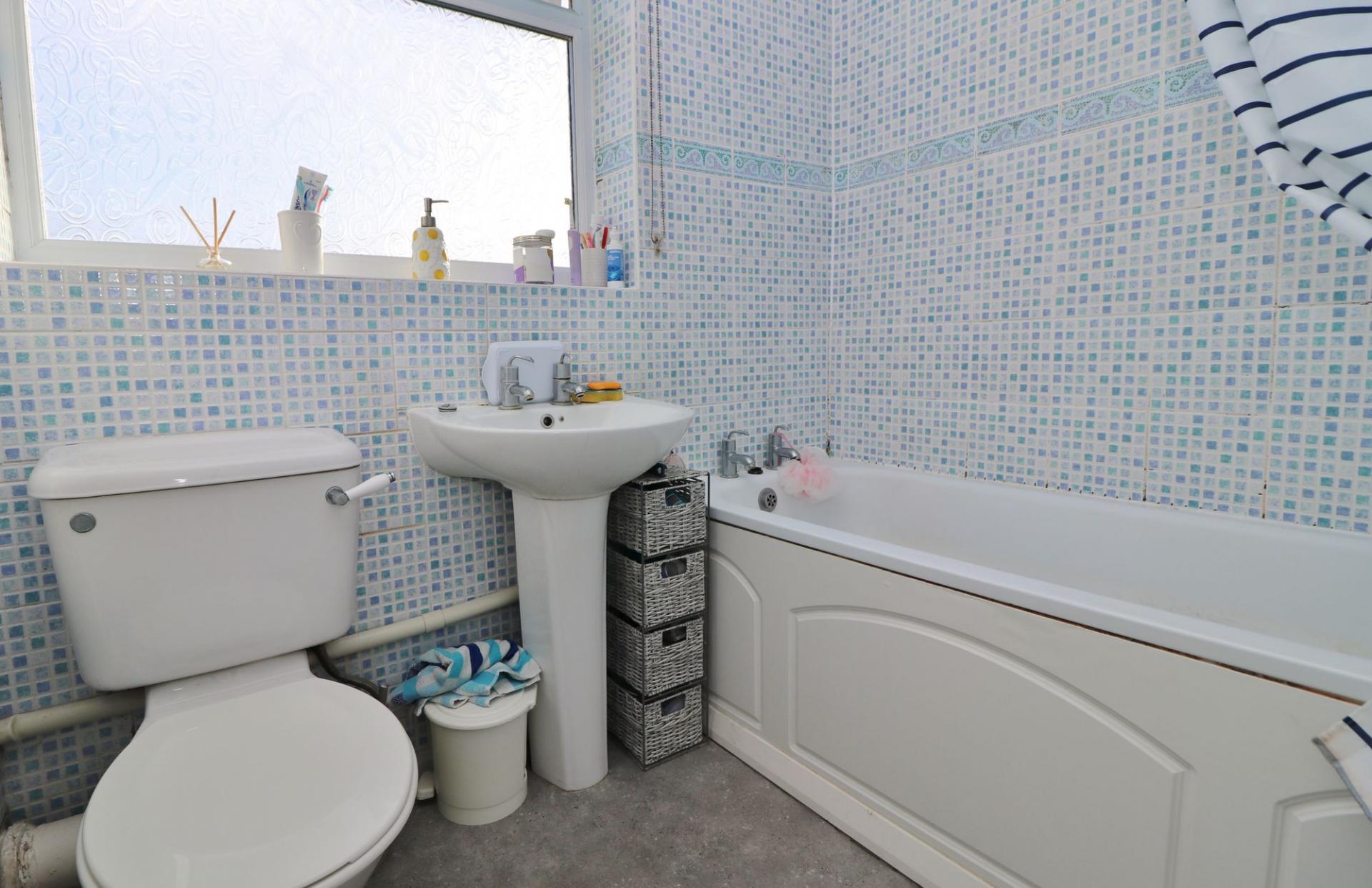 The family bathroom comprises a panel enclosed bath with shower over, wash hand basin, WC and a window to the rear.