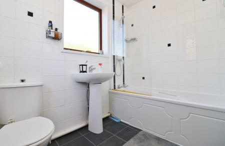 The family bathroom has been fitted with a white suite comprising a panel enclosed bath with shower and screen over, wash hand basin, WC and has windows to the side and rear.