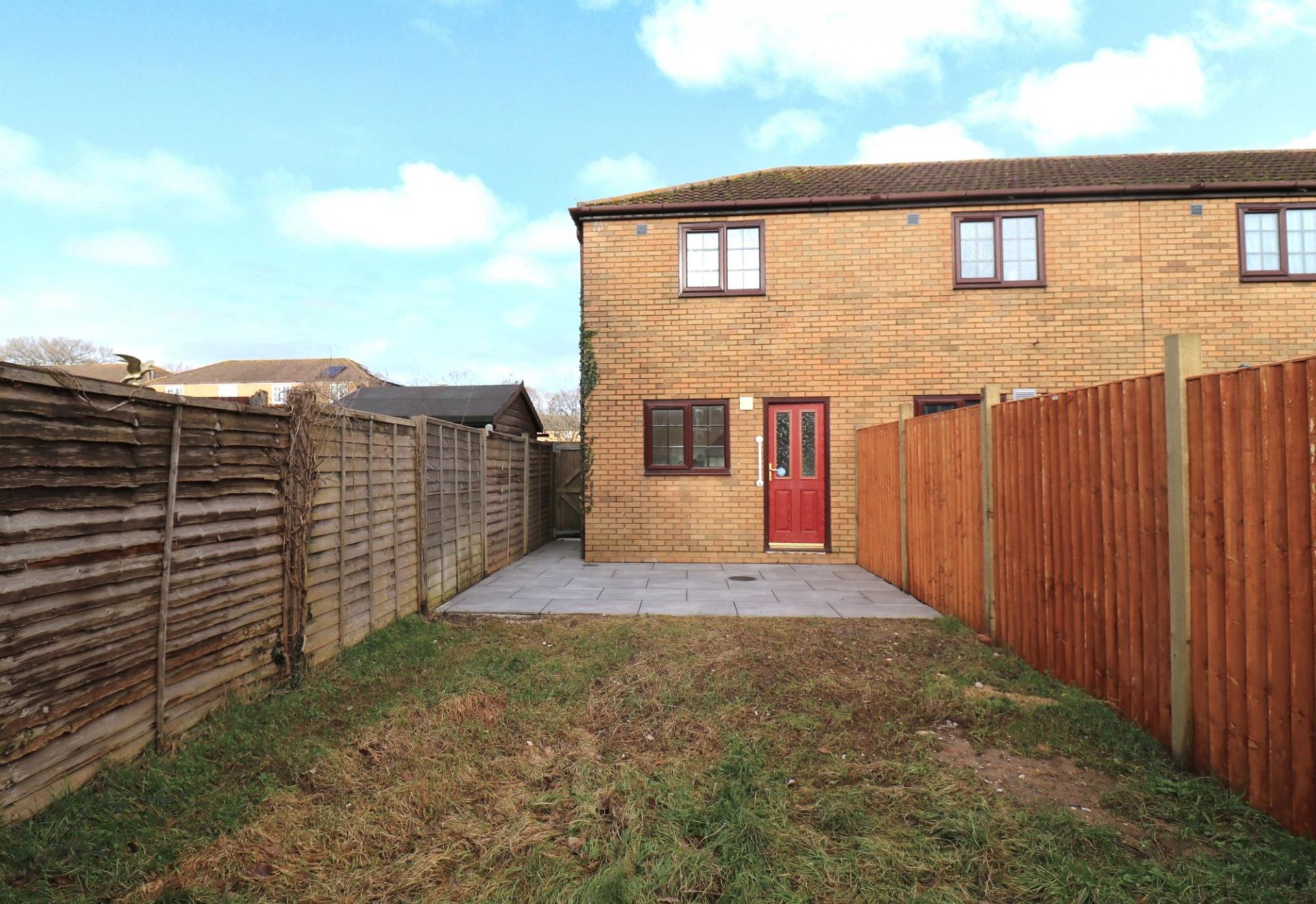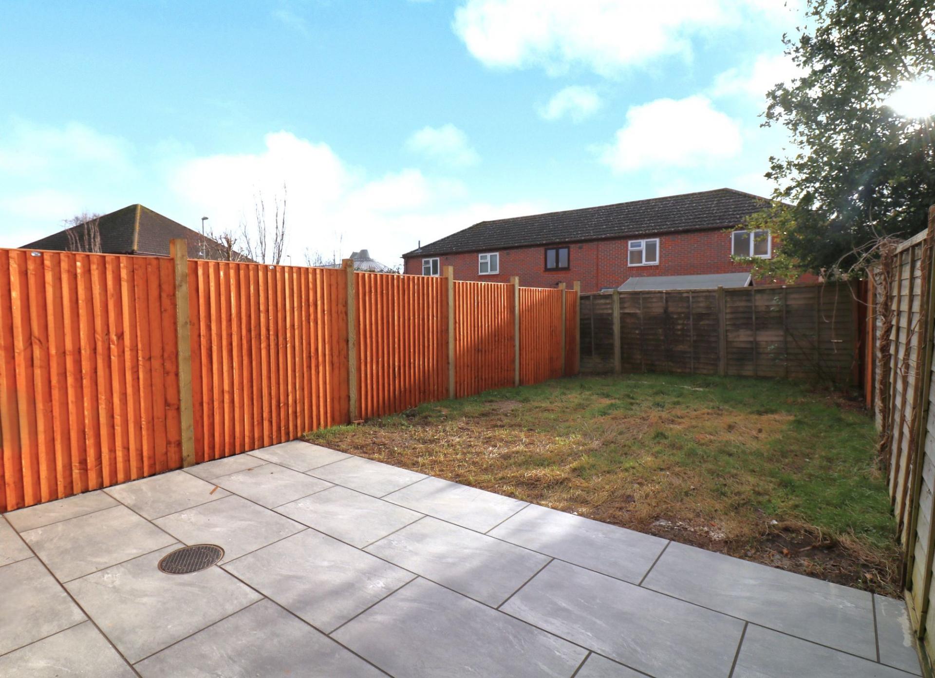 To the front there is allocated parking for two cars and gated, side access leading round to the rear garden which enjoys a south westerly aspect and features a new patio and fencing to the left hand side.