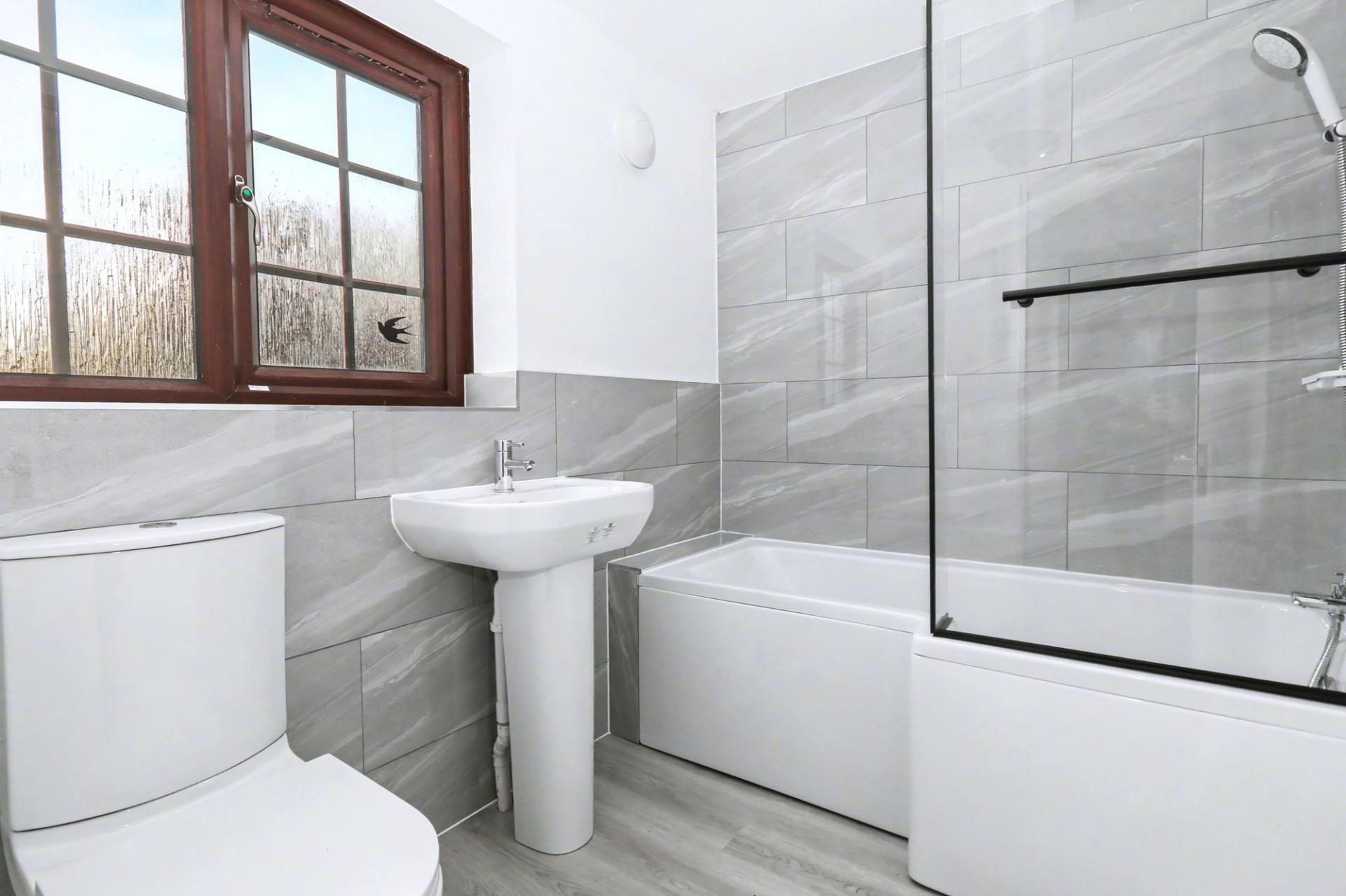 The well-proportioned master bedroom faces the front of the property, whilst the newly fitted, contemporary bathroom comprises a P-shaped bath with shower and screen over, wash hand basin, WC, complementary tiling and a window to the rear.