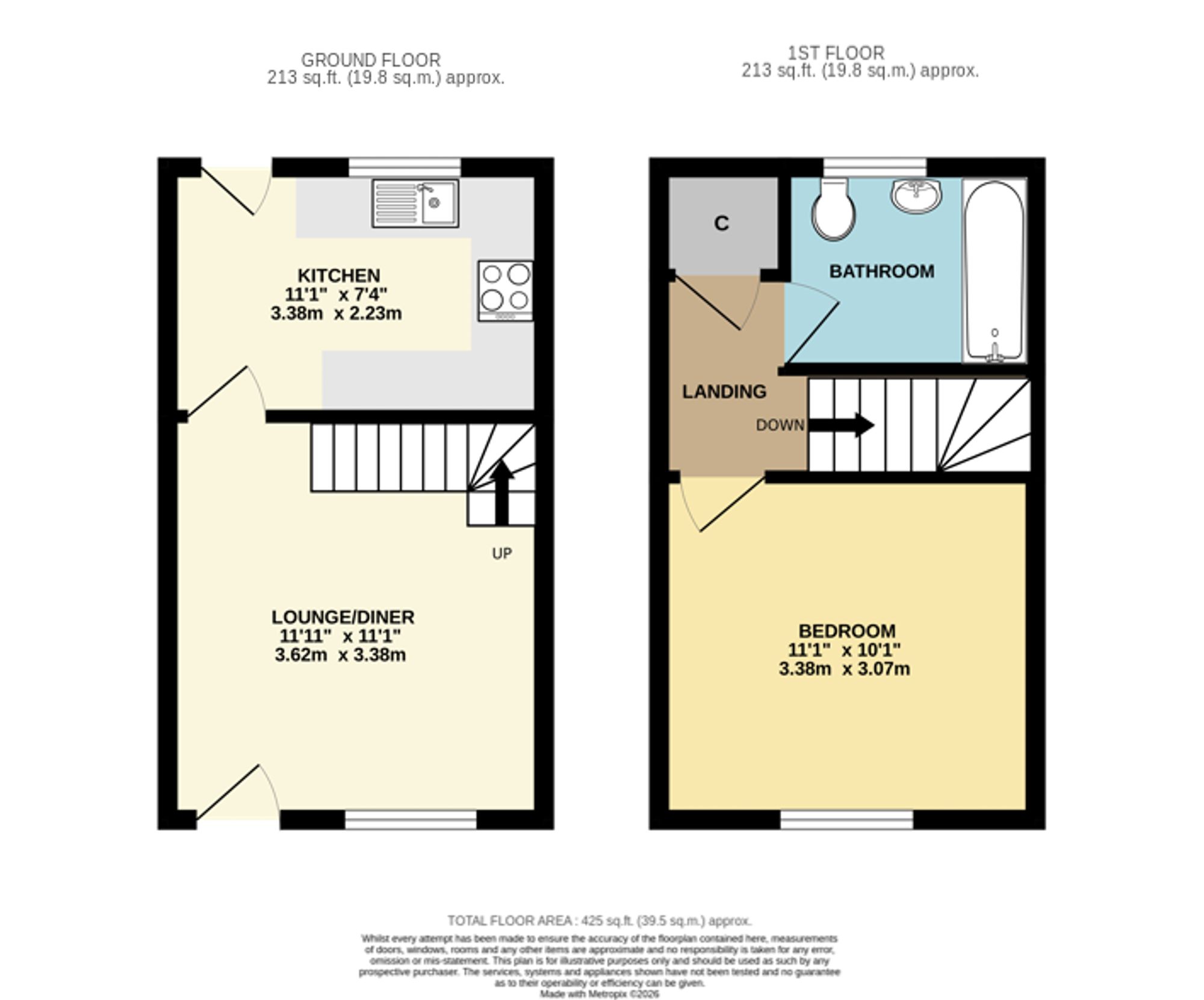 The accommodation on the ground floor comprises a well-proportioned lounge/diner and a modern kitchen with a door leading out to the rear garden.