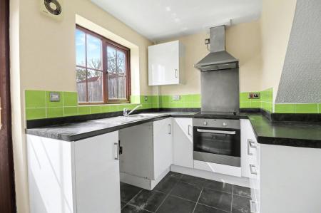 The front door opens into the lounge/diner which has a window to the front and stairs to the first floor. A door then leads through to the bright, modern kitchen which has been fitted with a range of units with a built-in oven and electric hob with extractor over, as well as space for free-standing appliances. There is also a window to the rear and a door leading out to the garden.