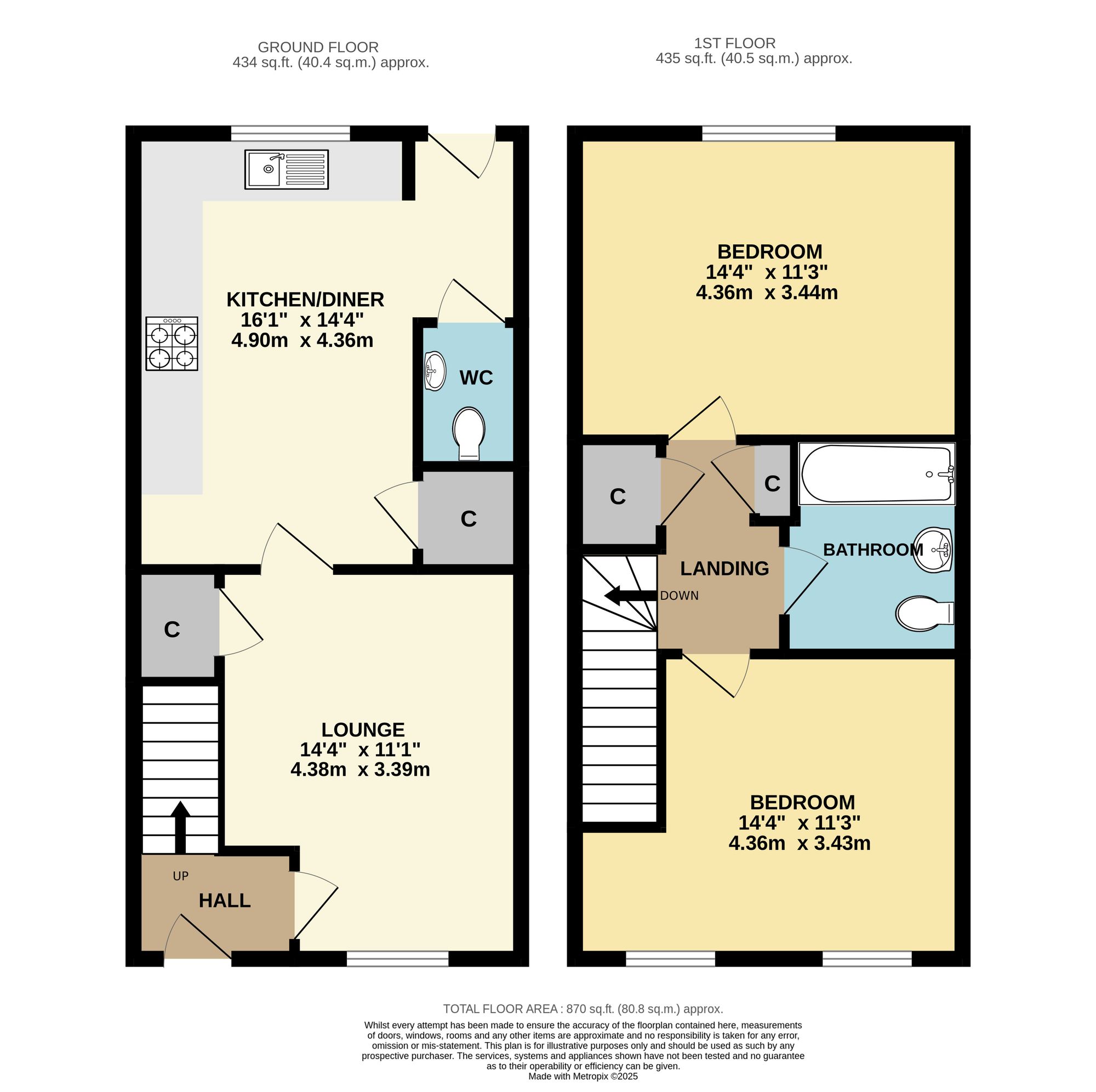 The ground floor accommodation offers a well-proportioned lounge, modern kitchen/diner and a WC, whilst on the first floor there are two, good-sized double bedrooms and a modern bathroom.