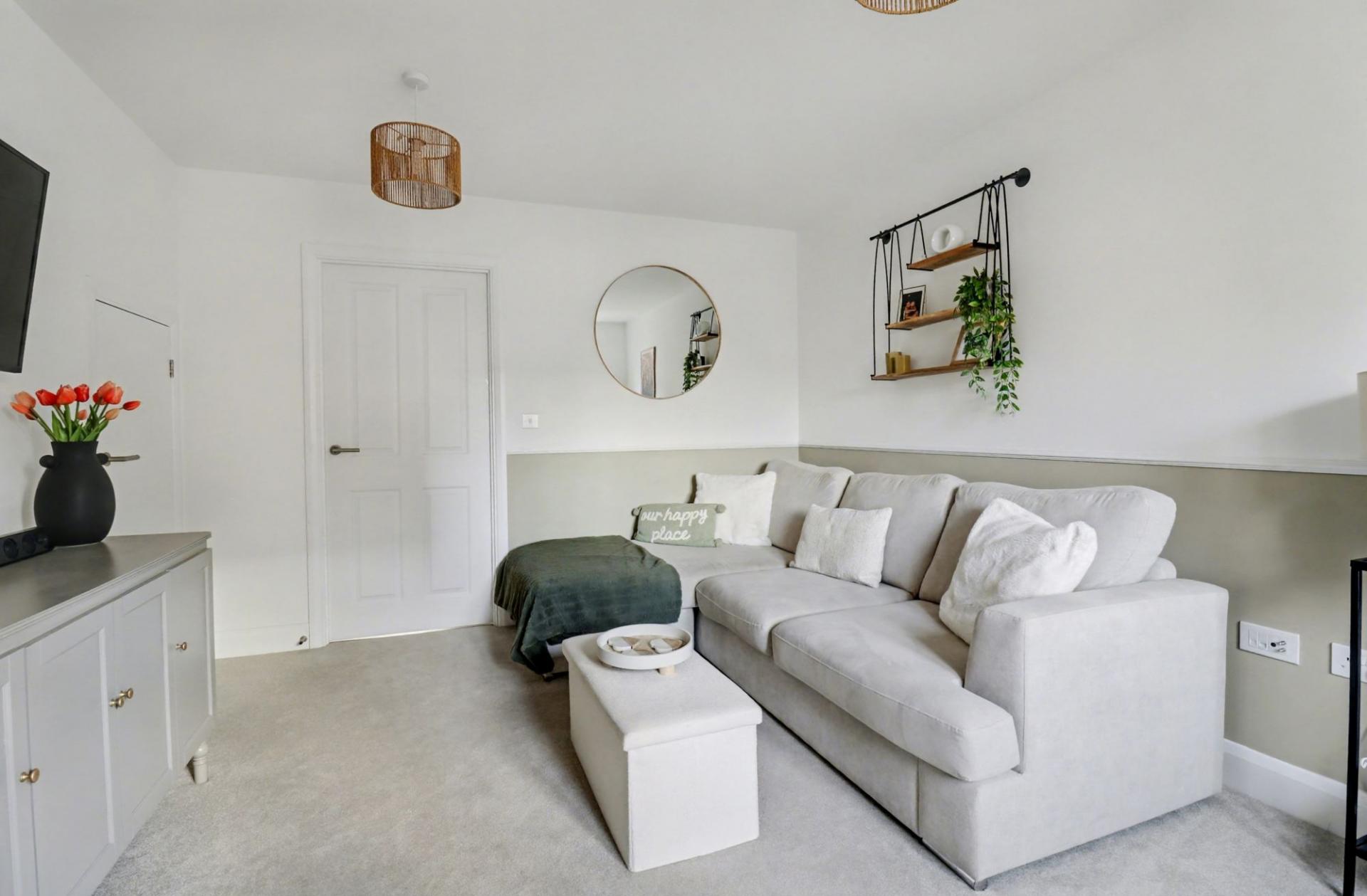 To the front there is one allocated parking space, as well as use of communal visitor’s spaces.