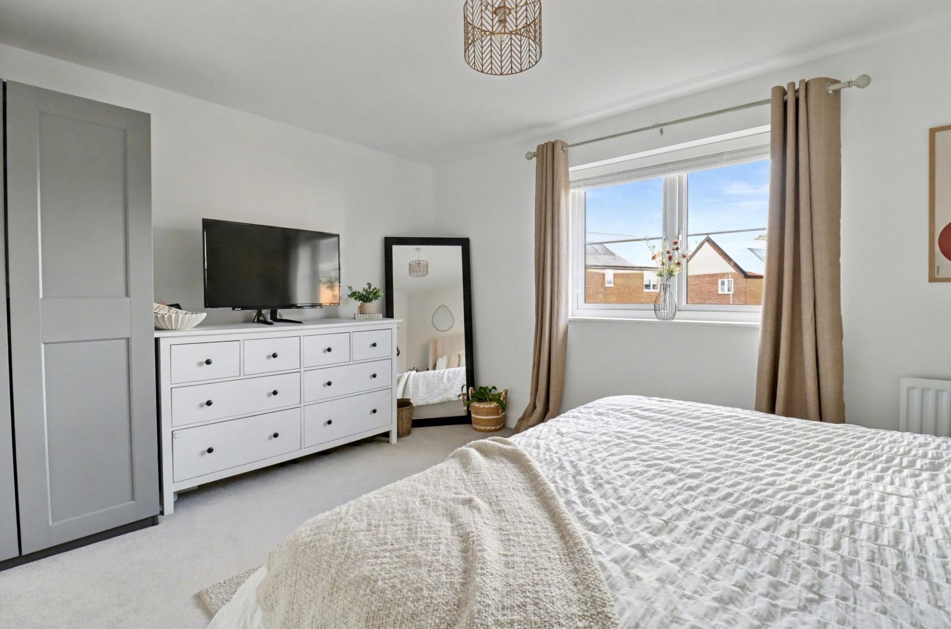 The good size master bedroom overlooks the rear garden, whilst the second bedroom has two windows to the front aspect.