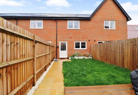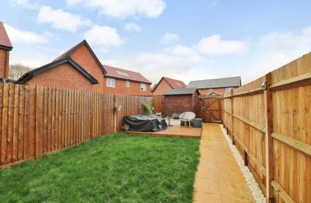 The attractive rear garden has a been laid to lawn with a decked seating area at the end and gated, rear pedestrian access.