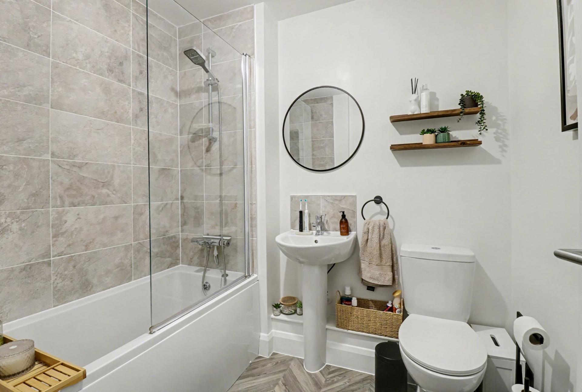 The bathroom has been fitted with a contemporary suite comprising a panel enclosed bath with shower and screen over, wash hand basin and a WC.