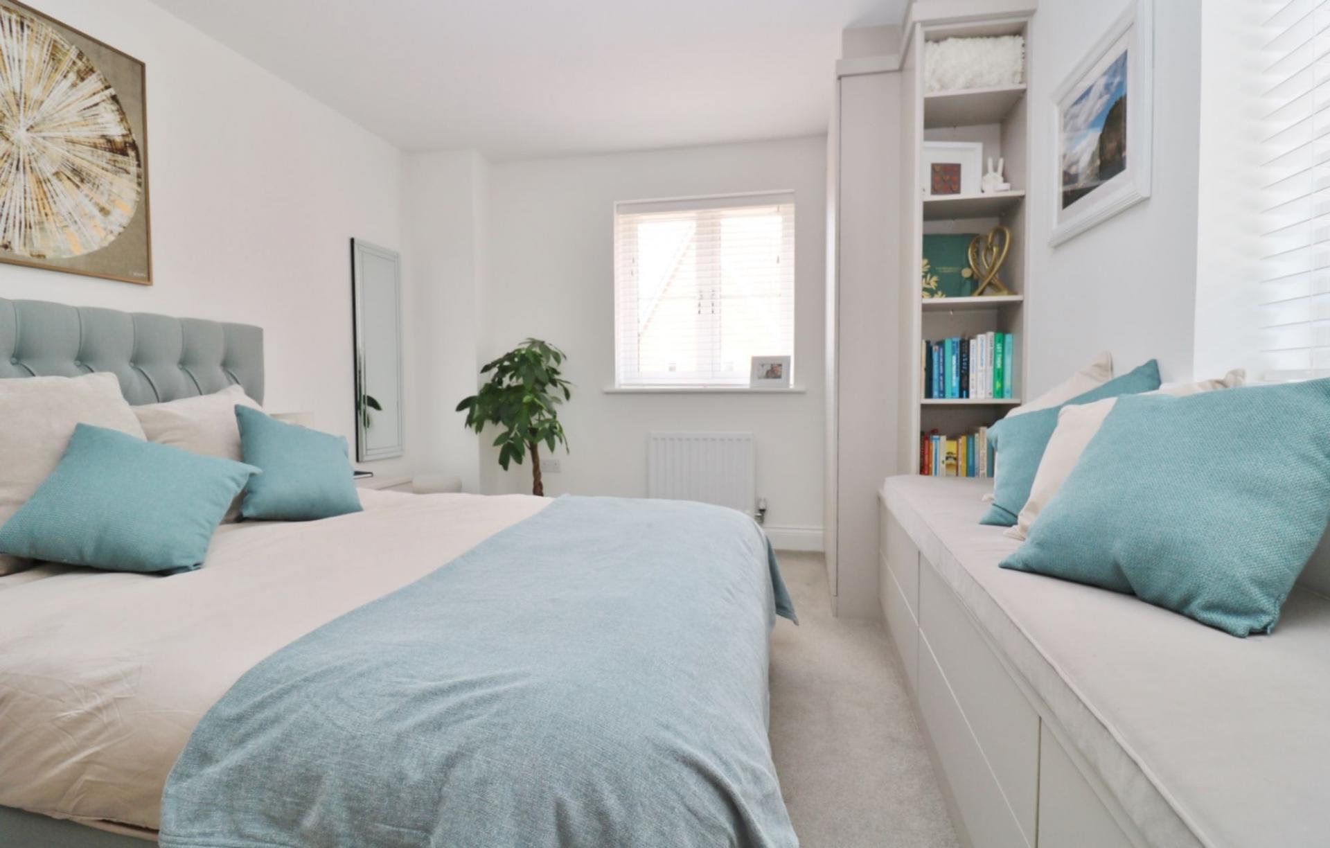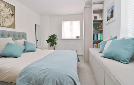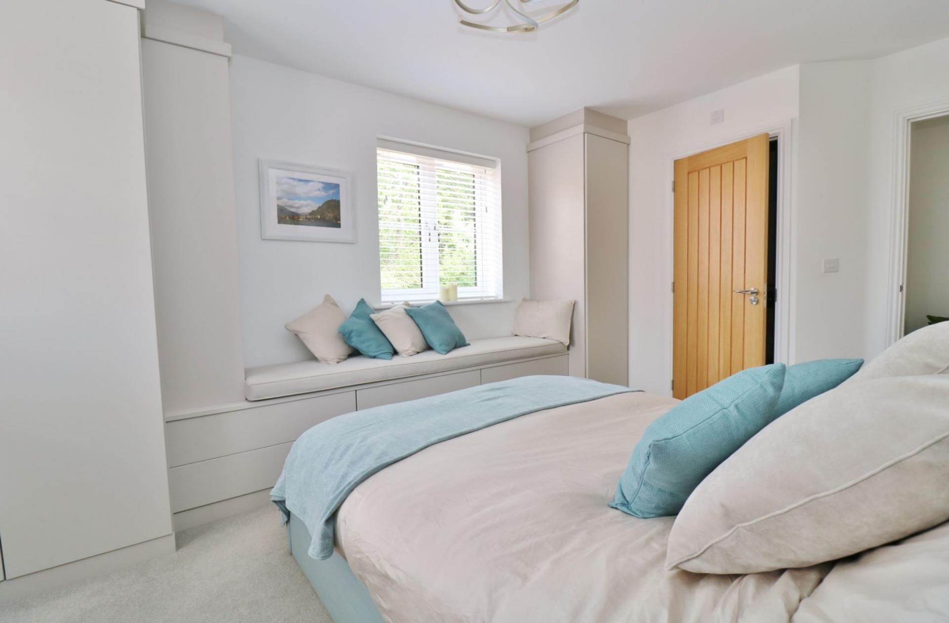 On the first floor, the good size master bedroom has windows to the front and side and features a range of ‘Hammond’ fitted furniture, including wardrobes, drawers and a window seat. The modern en-suite comprises a shower cubicle with overhead ‘rainfall’ style shower head, wash hand basin, WC and a heated towel rail.