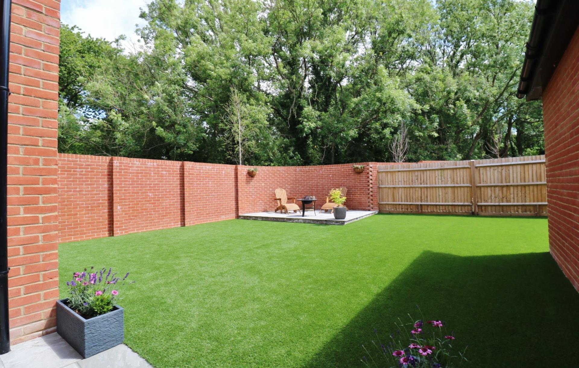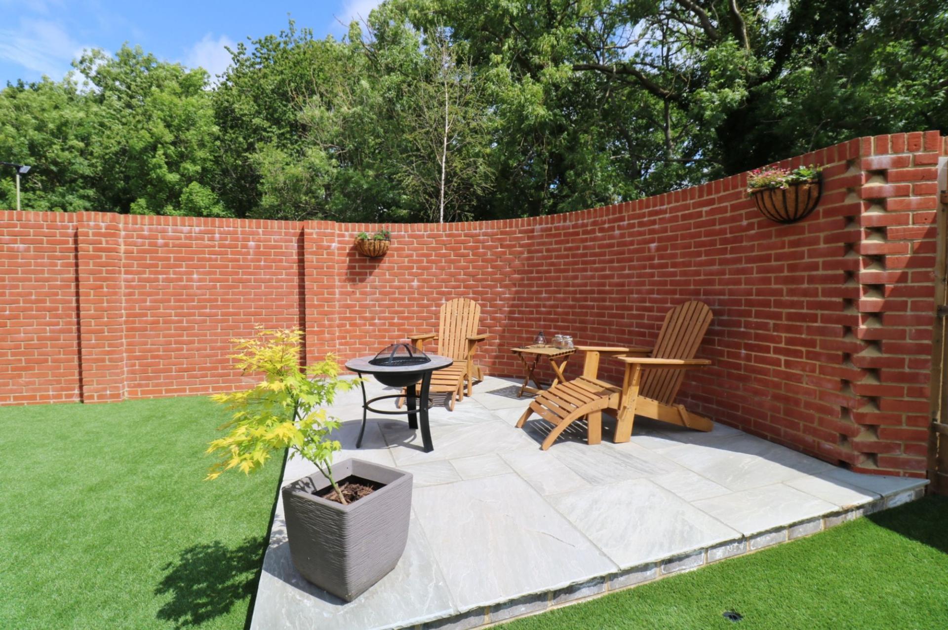 · Landscaped garden with artificial lawn and Indian sandstone paving.