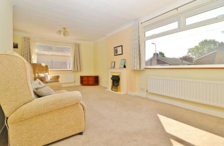 The entrance hall has a built-in cupboard and doors through to all rooms. The bright and spacious lounge/diner has a feature fireplace and windows to the front and side.