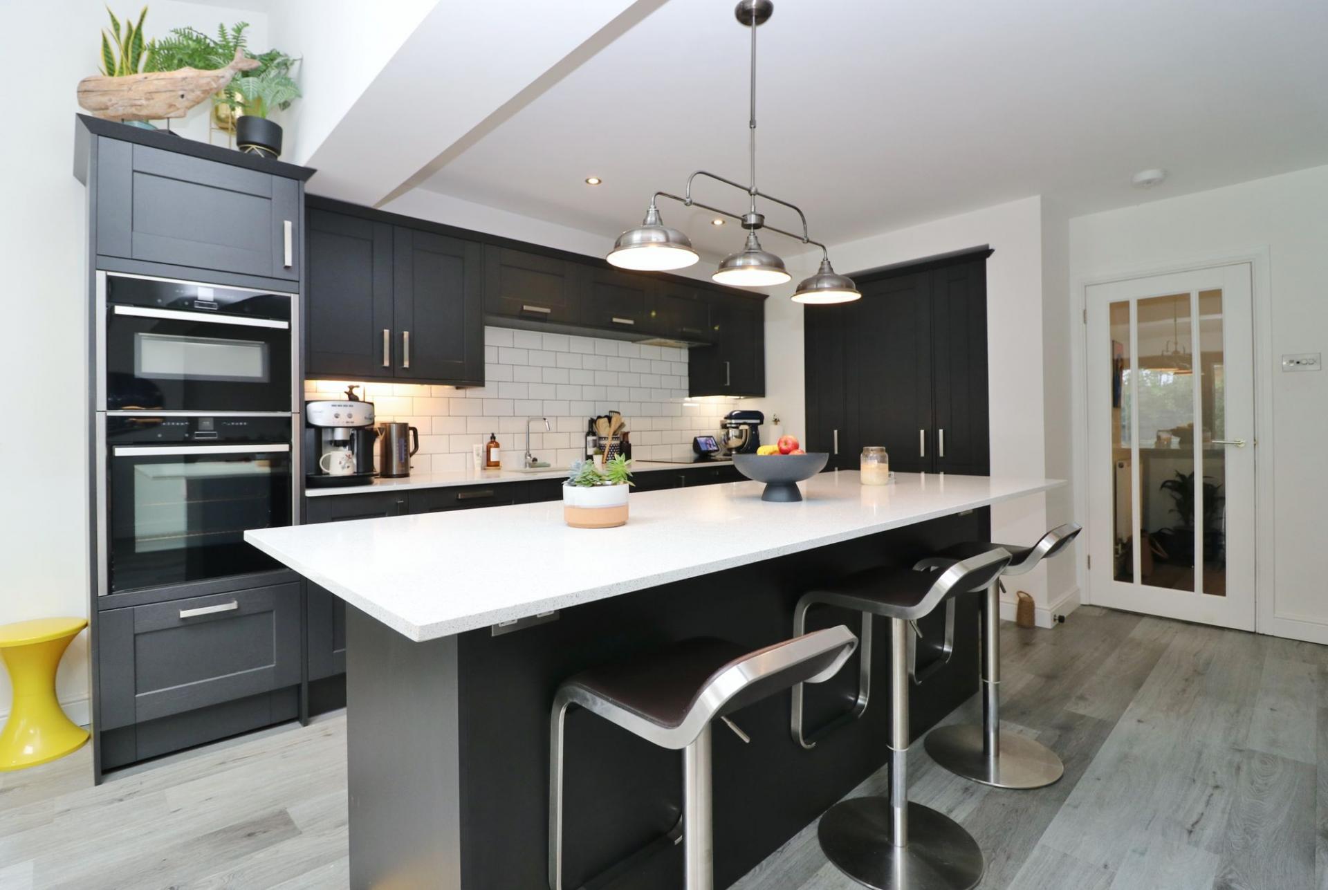 The kitchen has been fitted with a contemporary range of wall and base units with Quartz worktops and an island incorporating a breakfast bar. There are a range of integrated appliances including a double oven, induction hob with extractor over, fridge/freezer and dishwasher.